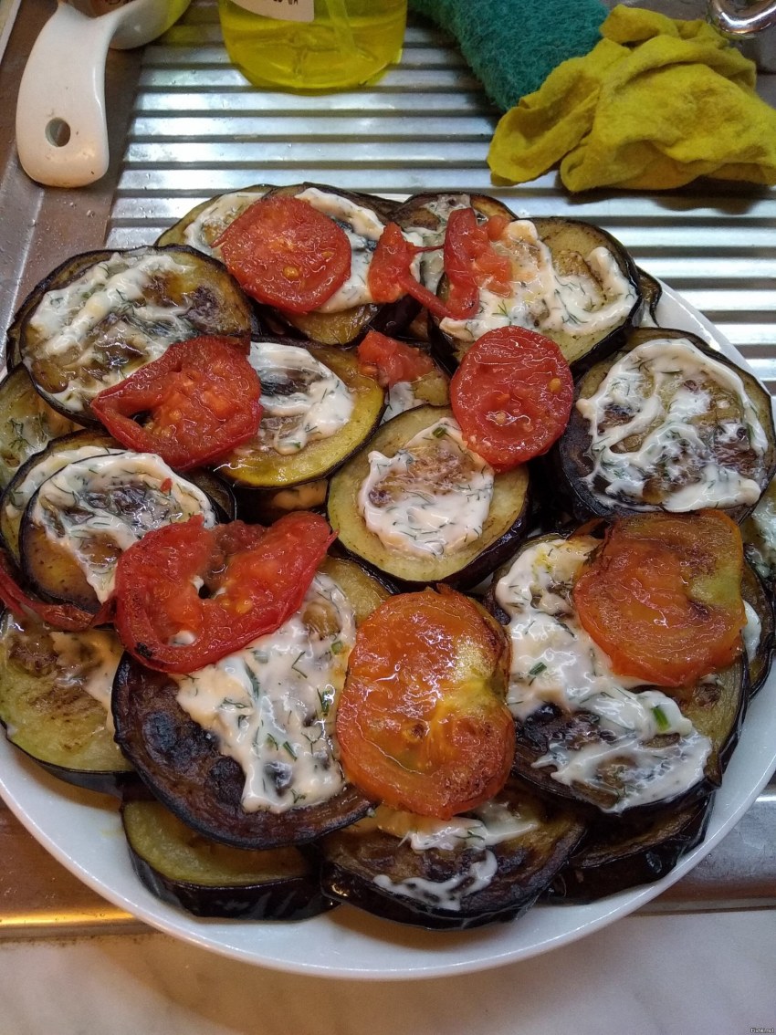 Жареные баклажаны с чесноком и майонезом
