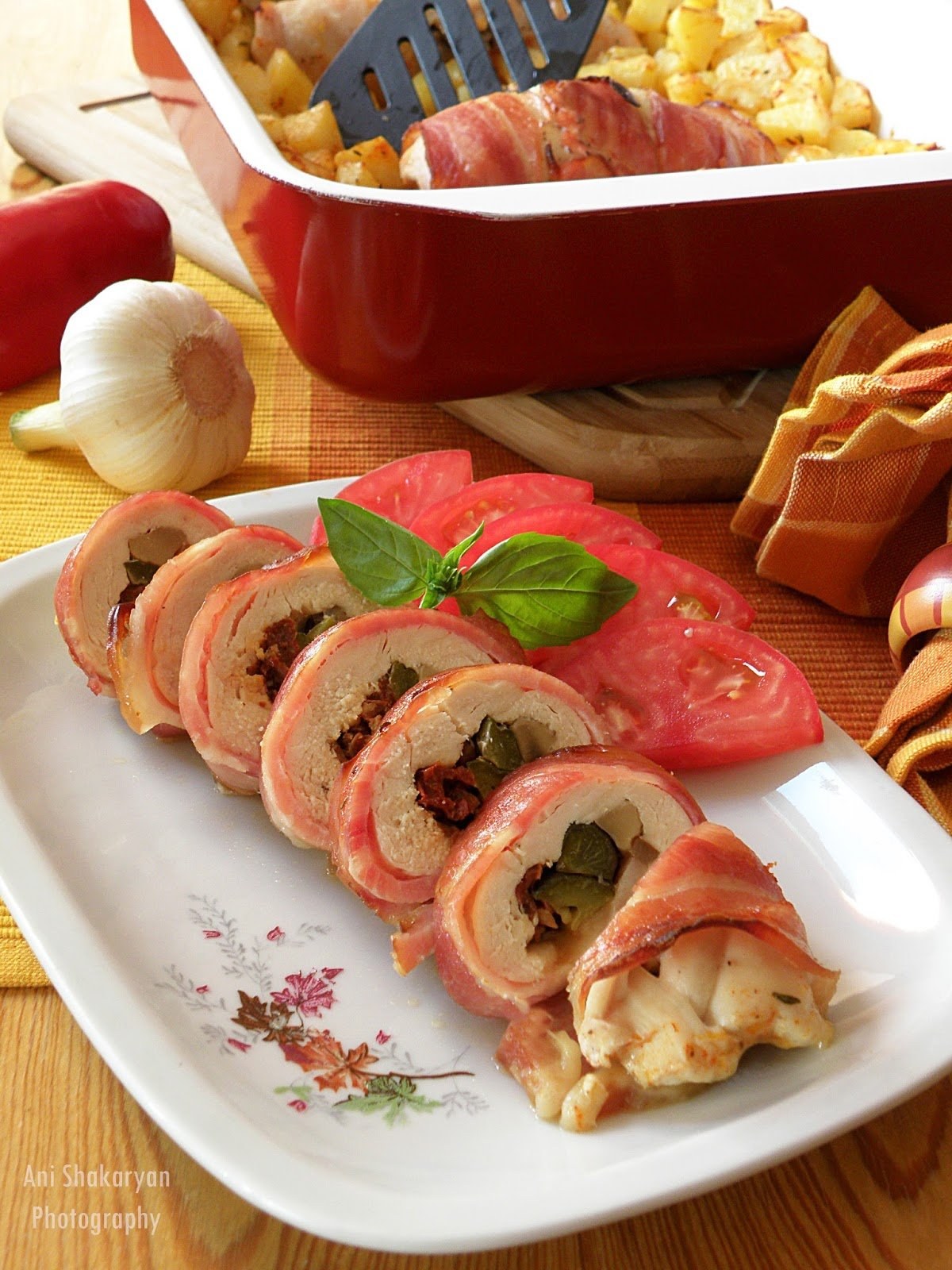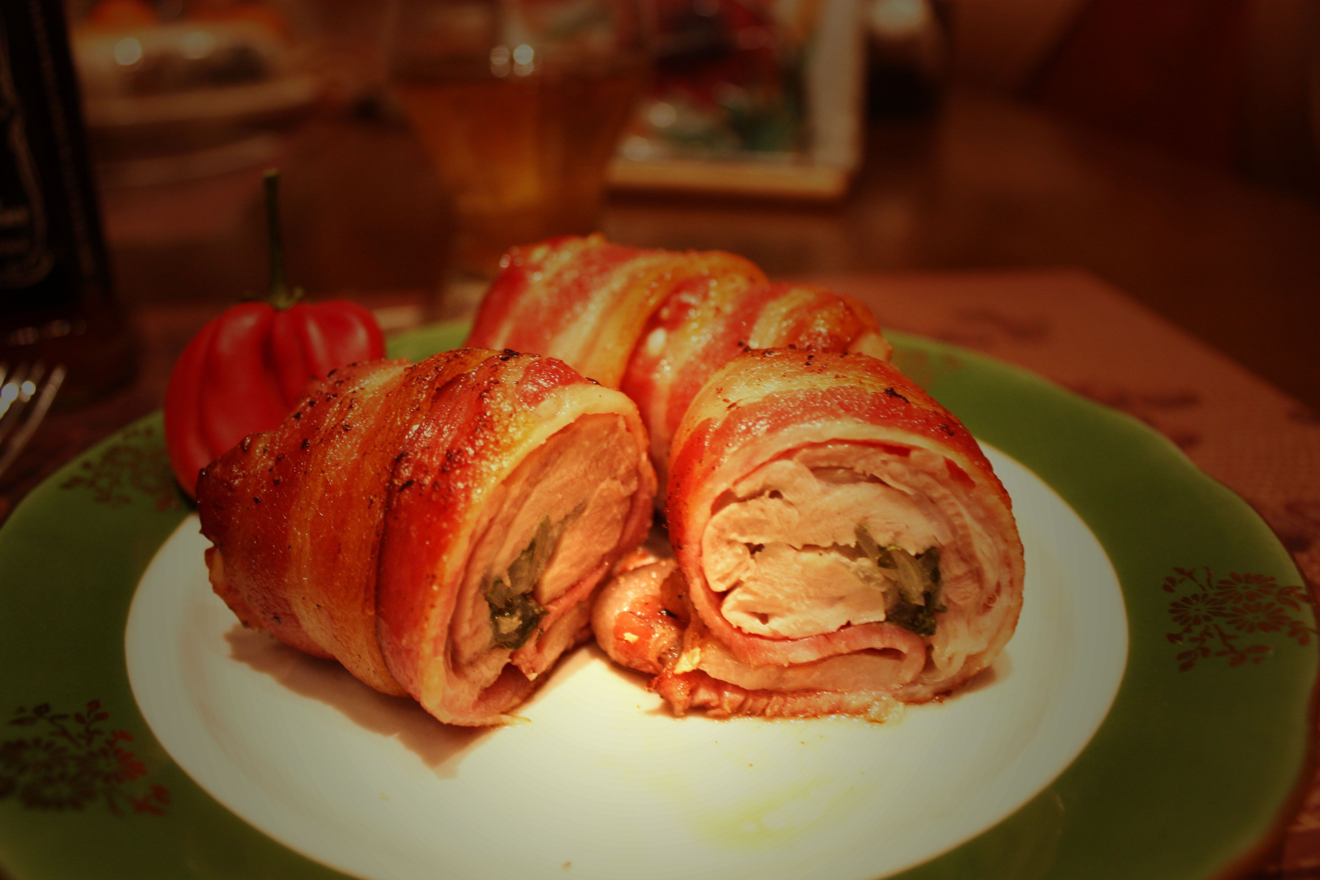 Куриный рулет в беконе в духовке