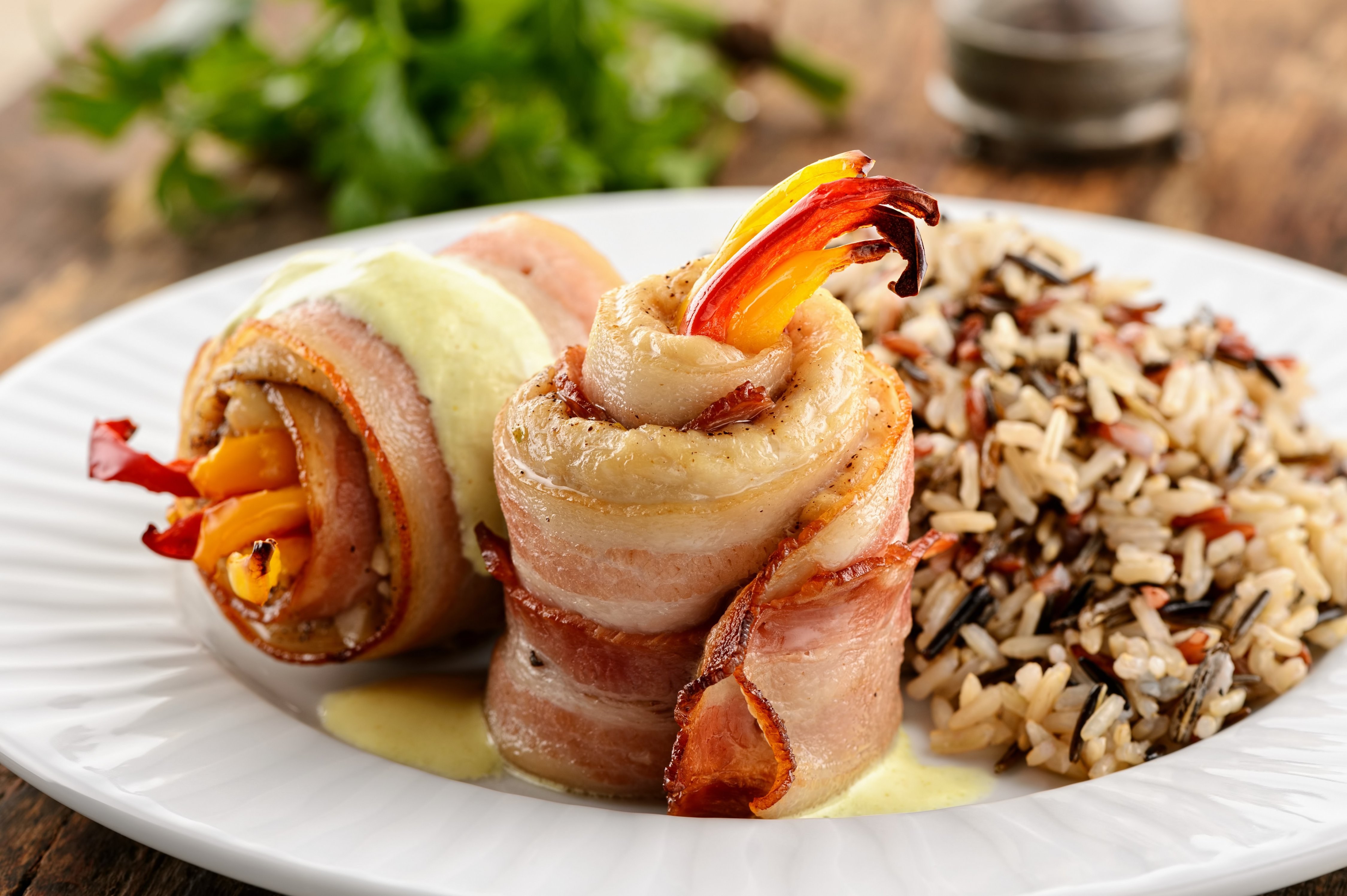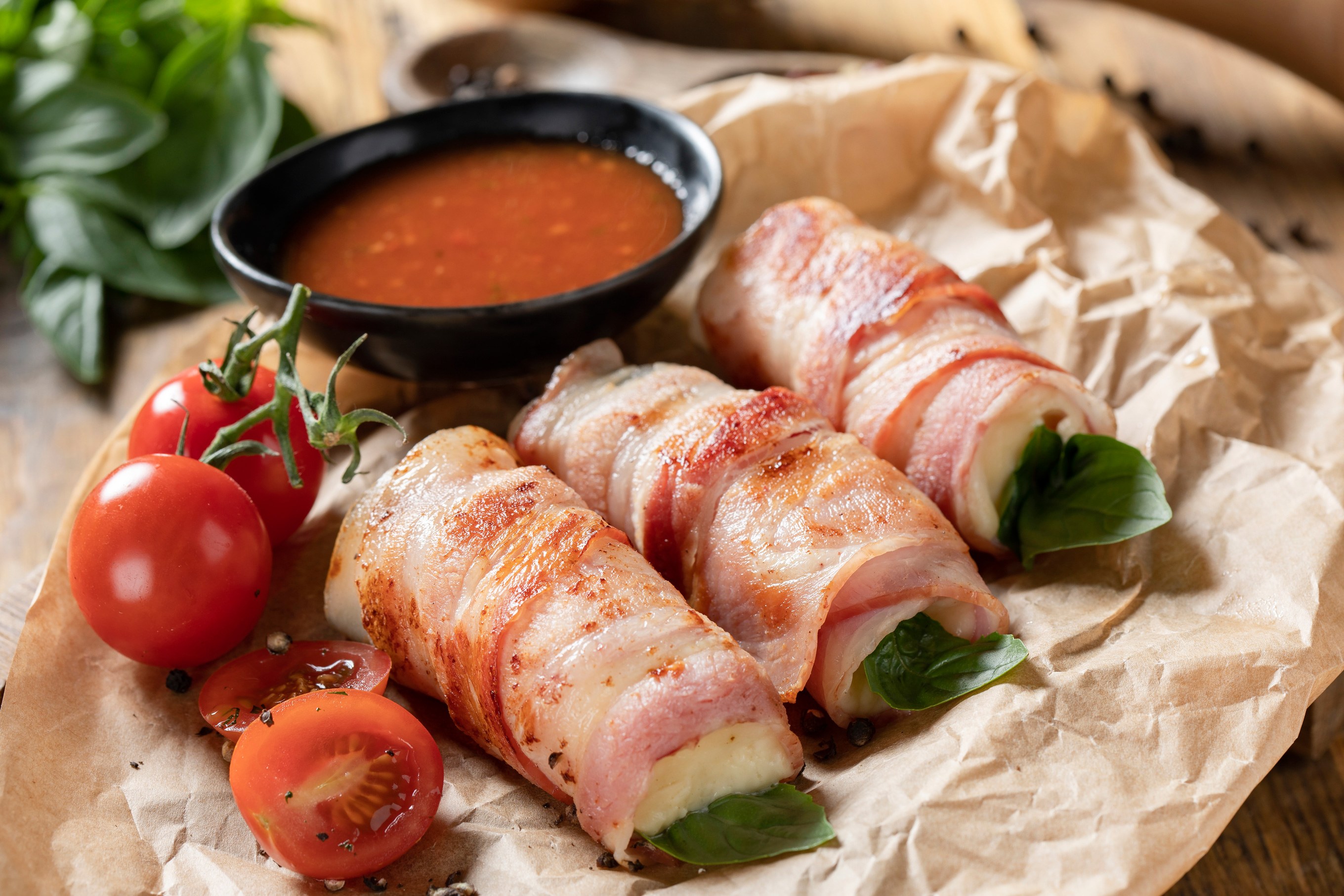 Куриные рулетики в беконе