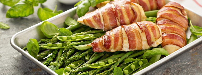 Куриные рулеты со спаржей в беконе