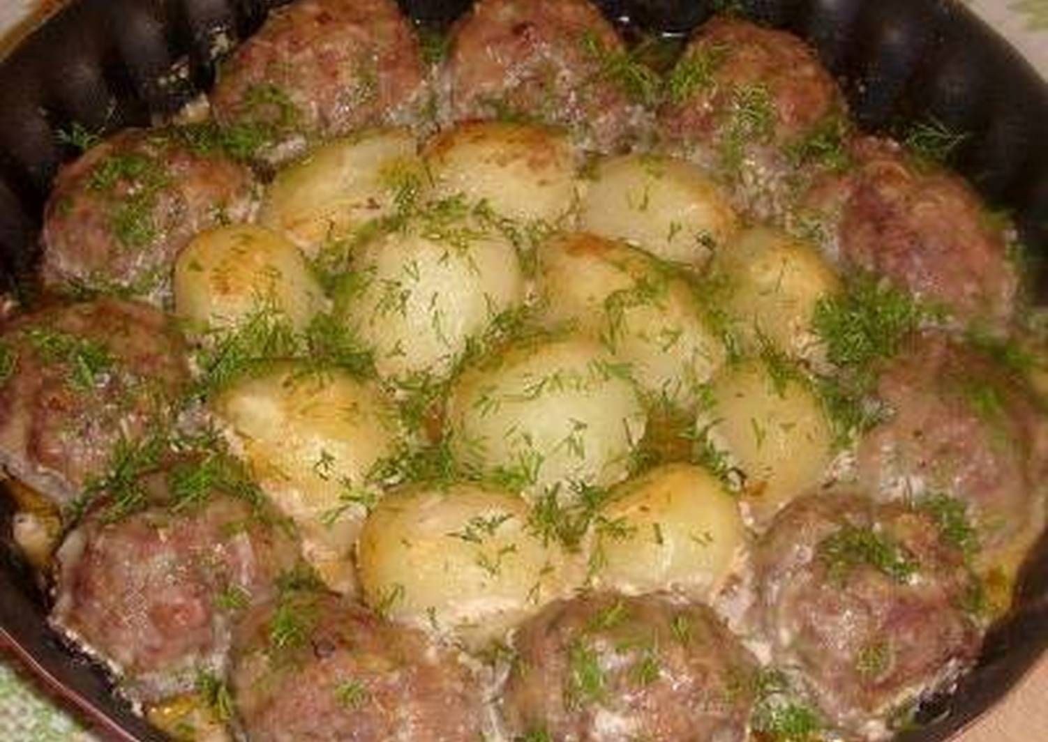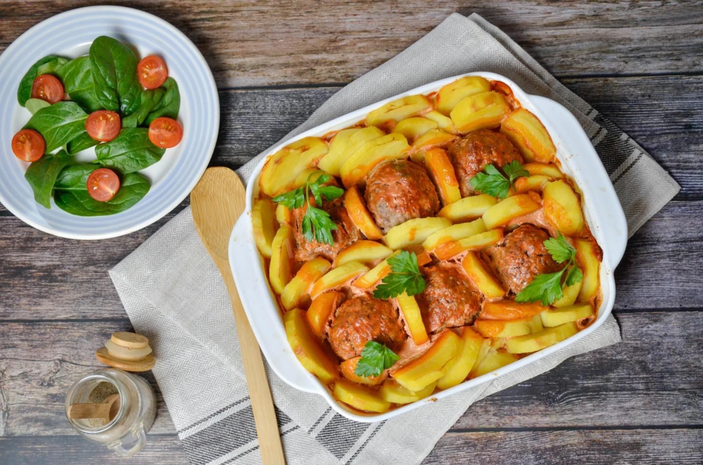 Картофель с тефтелями в духовке