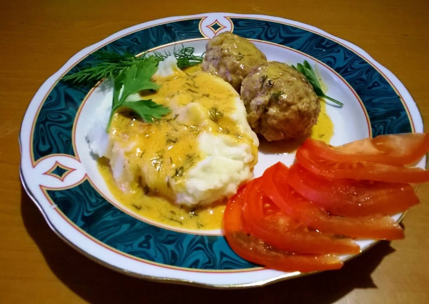 Пюре с тефтелями и подливкой