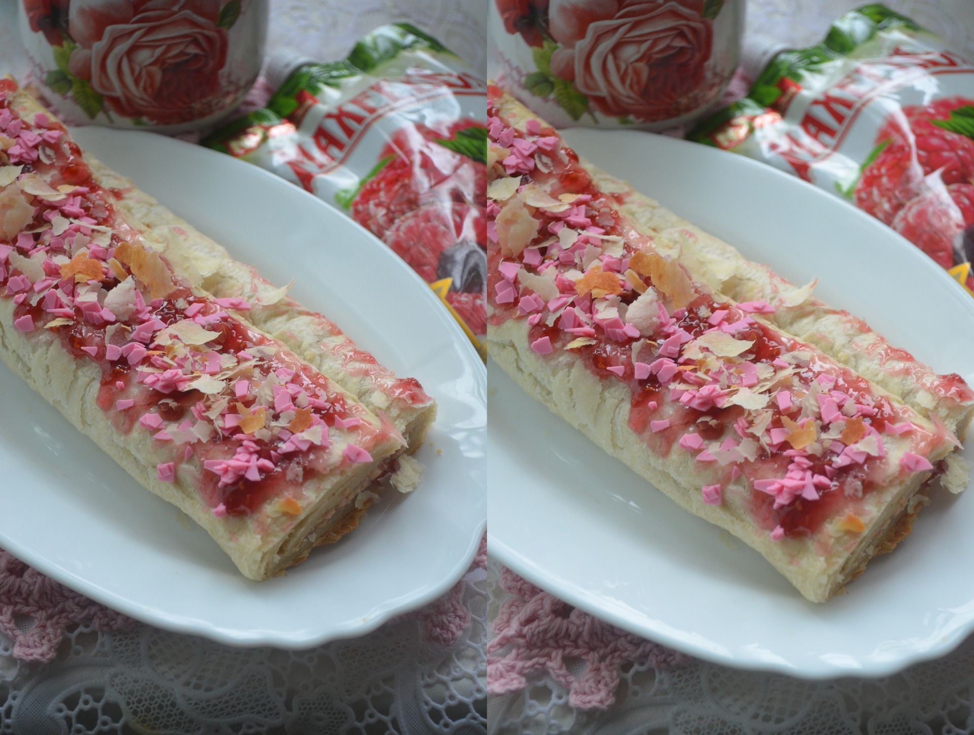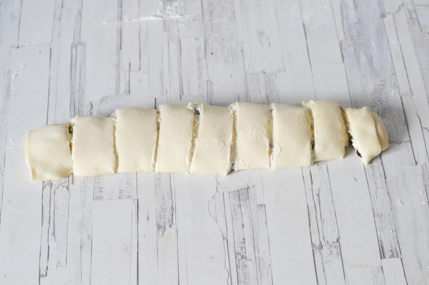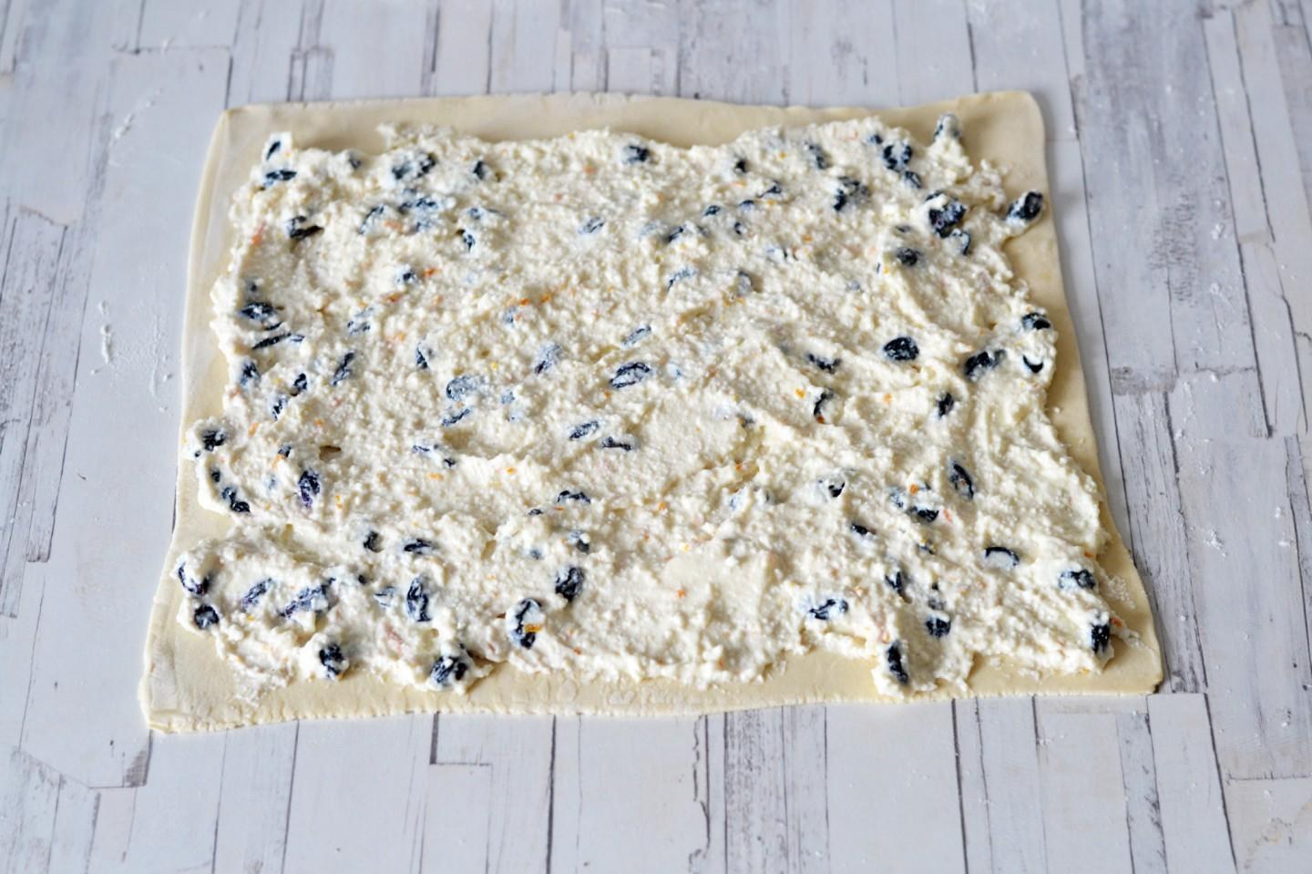 Рулет из слоеного теста с творогом