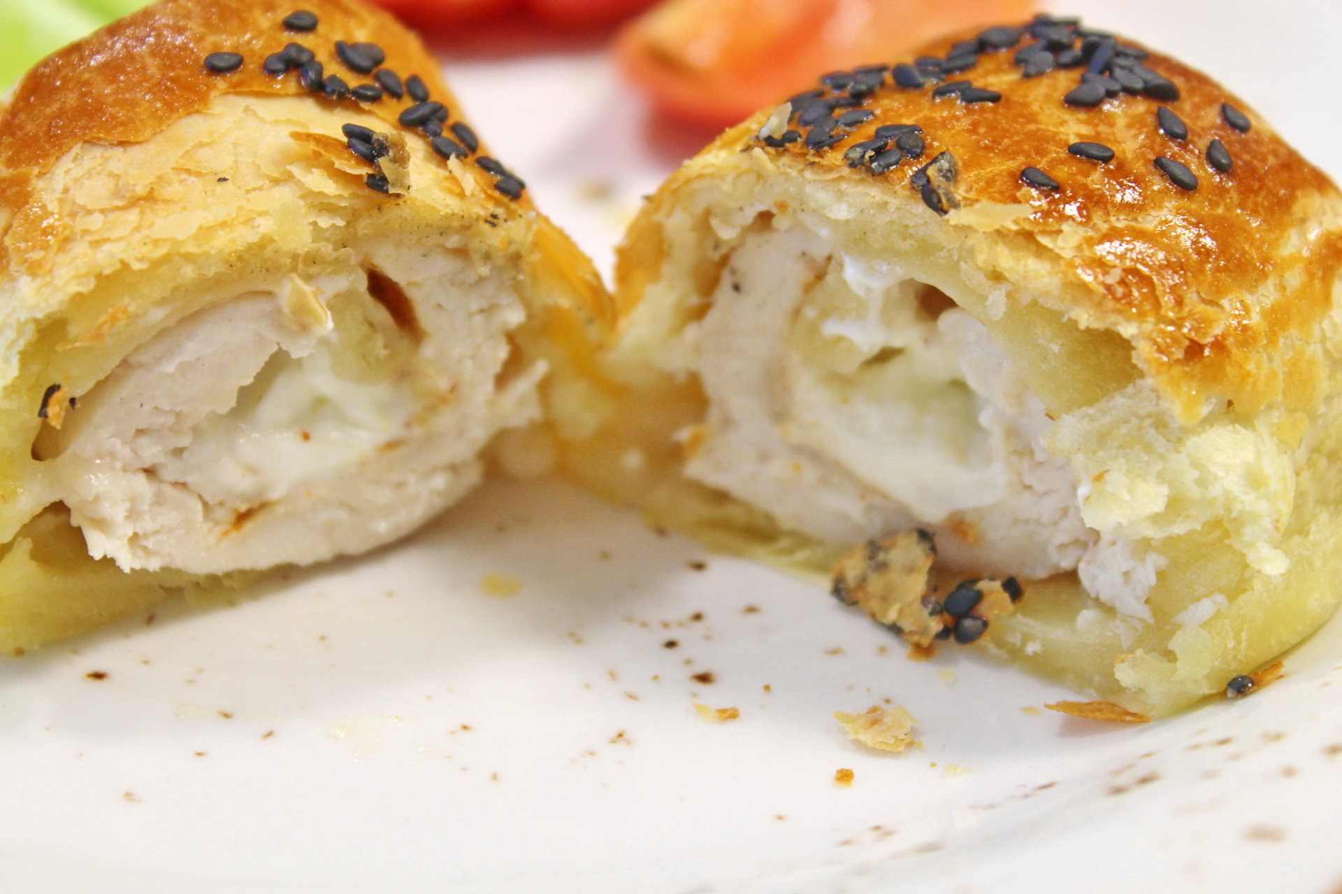 Рулет с курицей в слоеном тесте