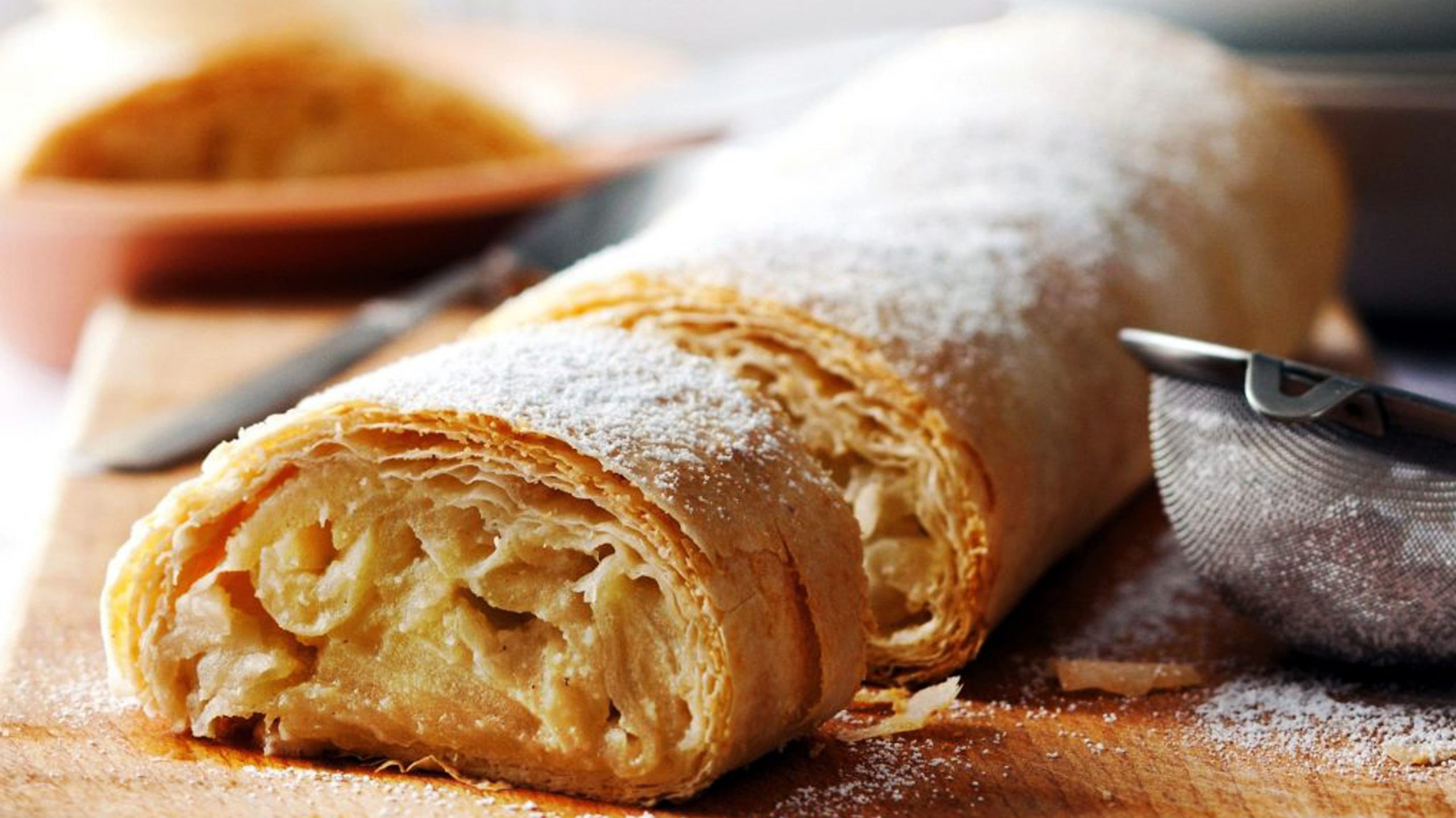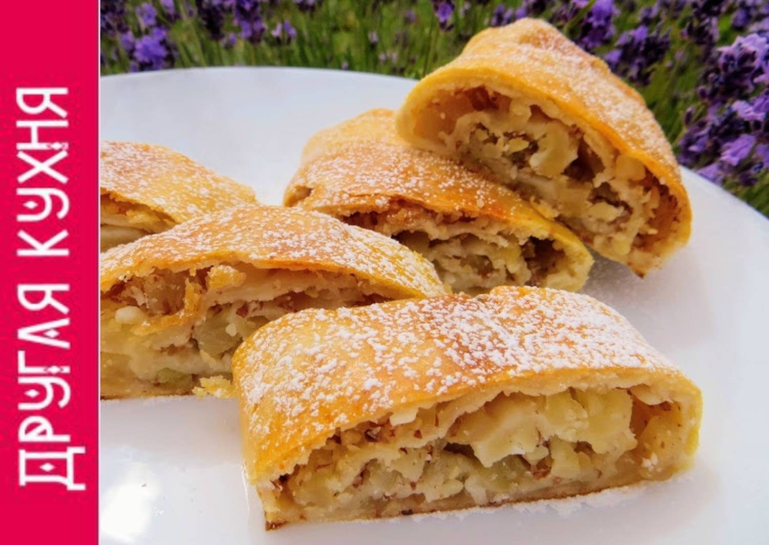 Штрудель с творогом из слоеного теста