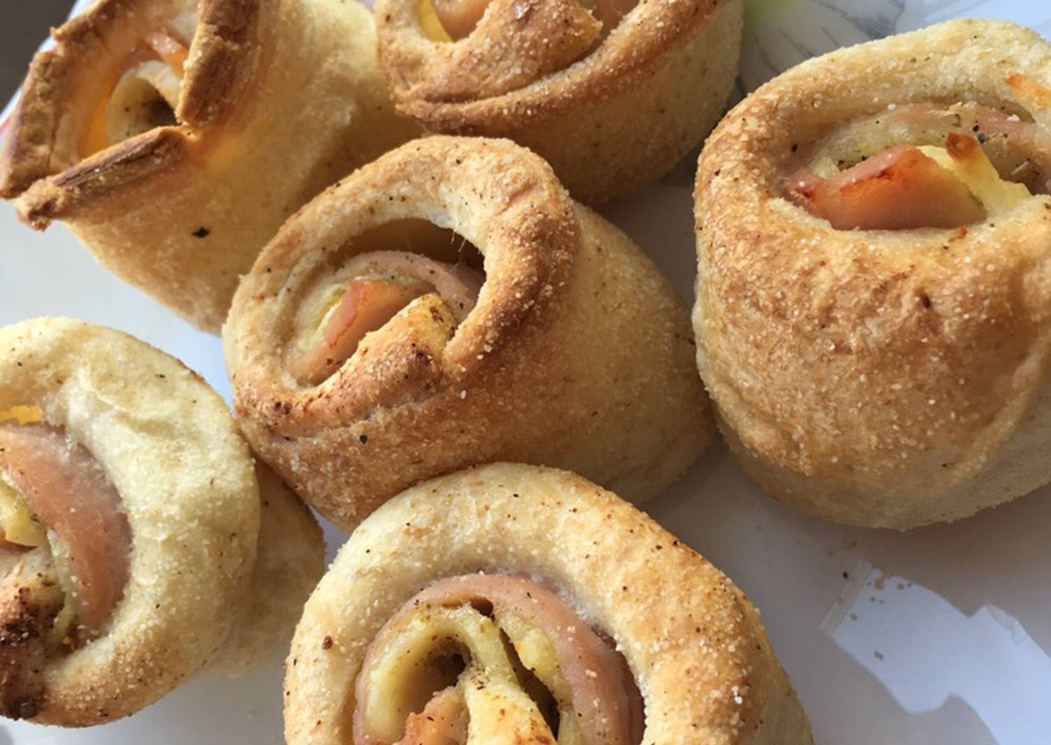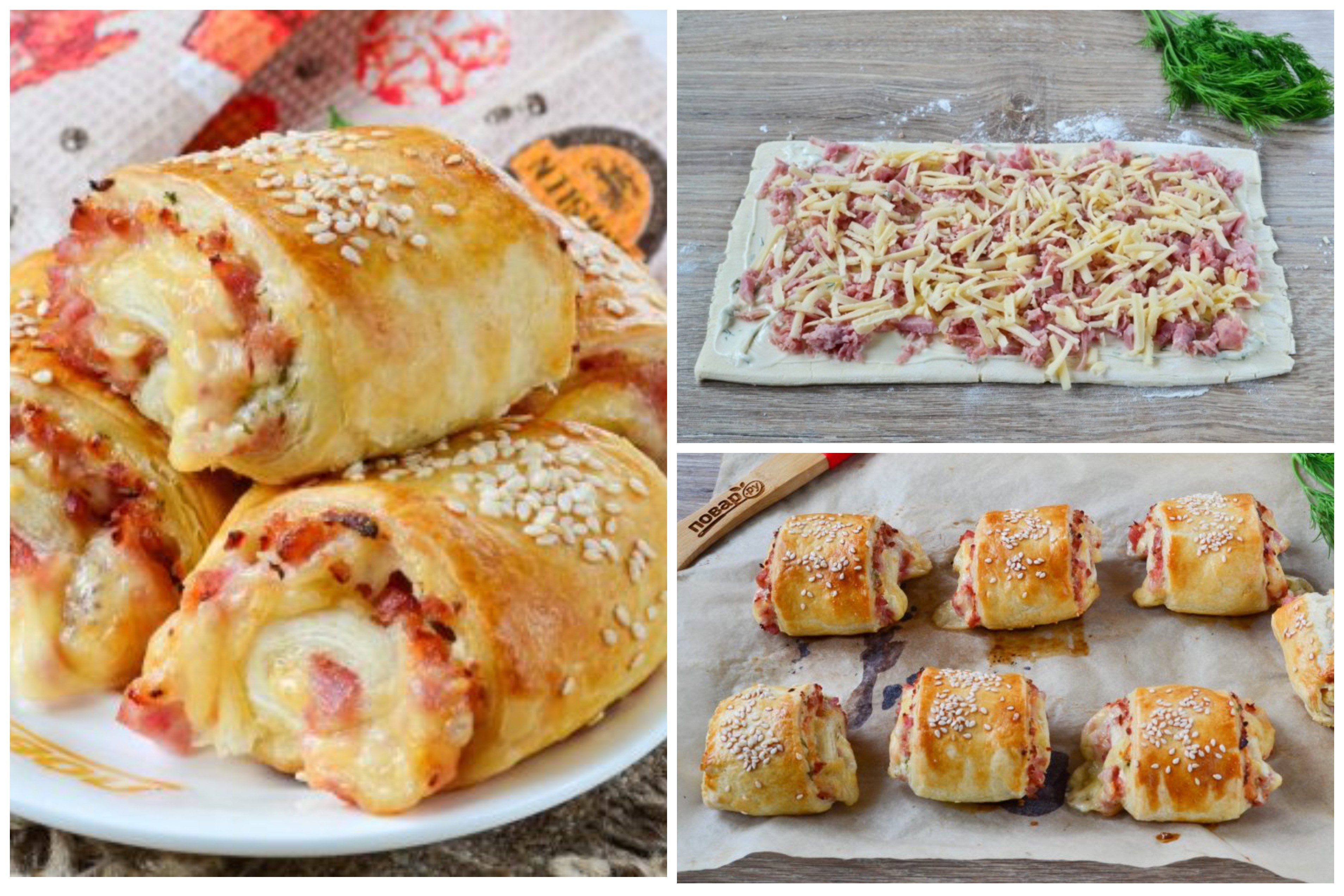 Рулетики из слоёного теста с ветчиной и сыром