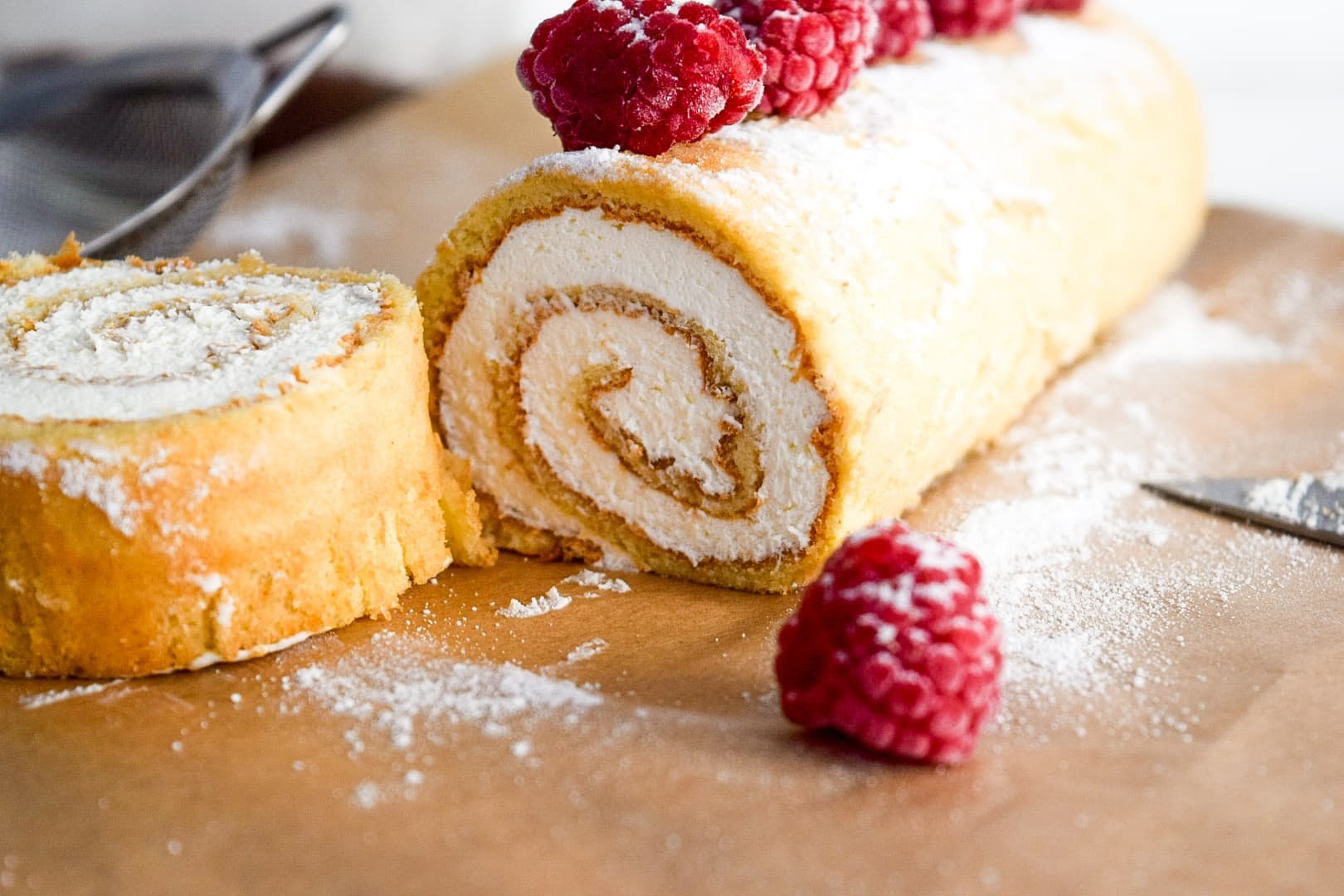 Бисквитный рулет с творожным кремом