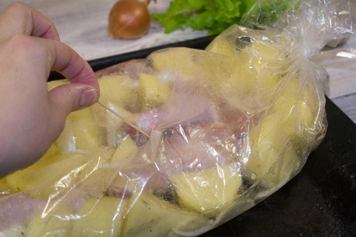 Курица с картошкой в рукаве