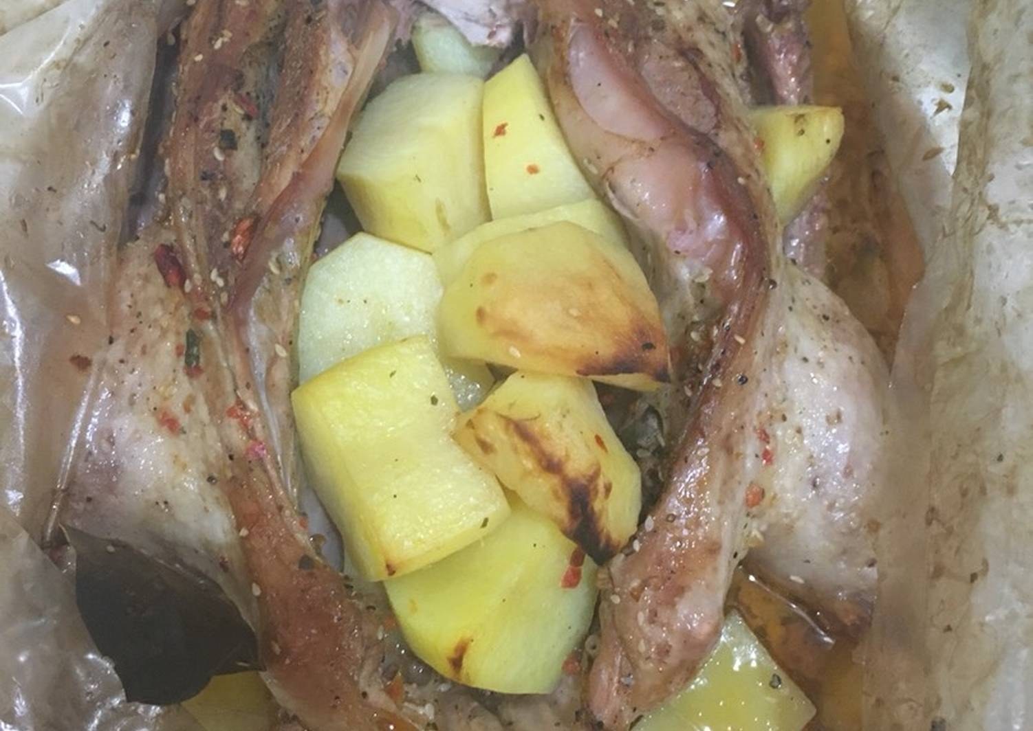 Ножки с картошкой в рукаве