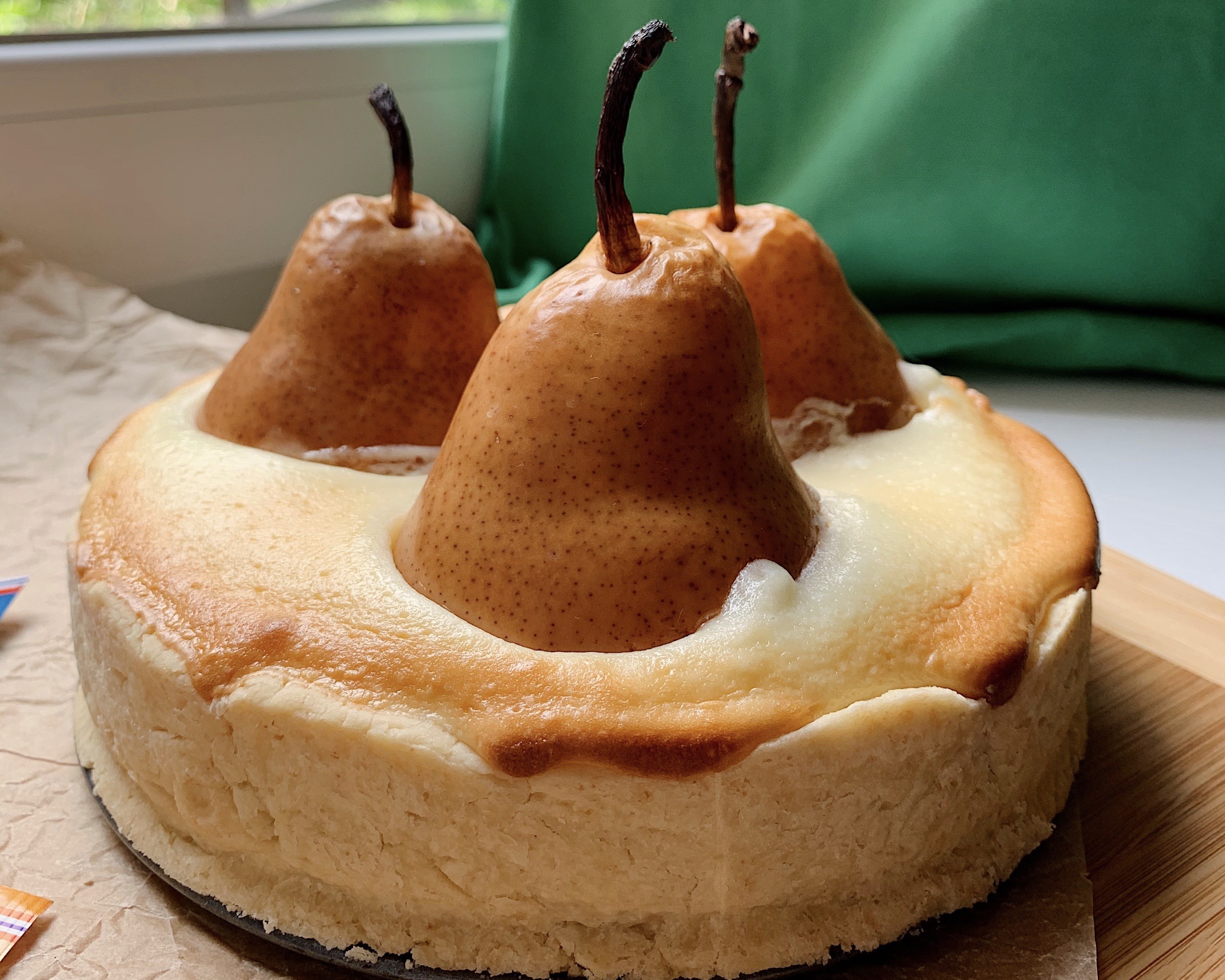 Творожный бисквитный пирог с грушей