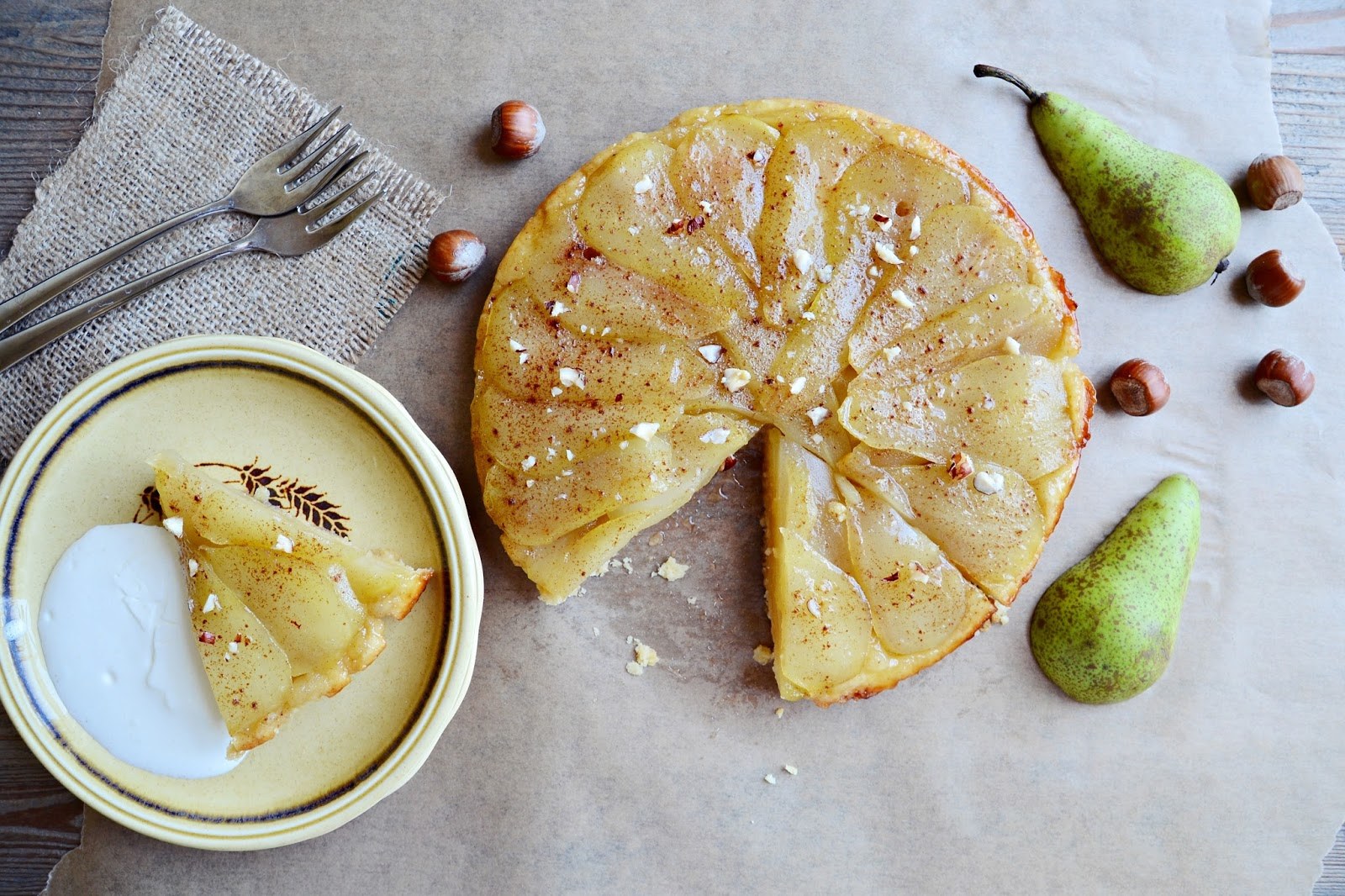 Открытый пирог с грушей