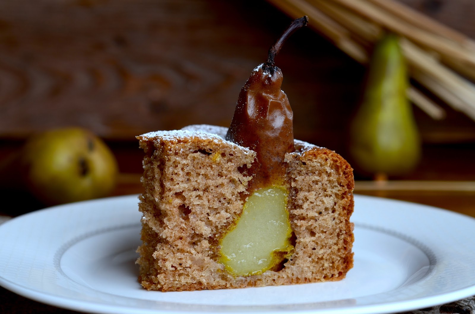 Кекс с карамельными грушами