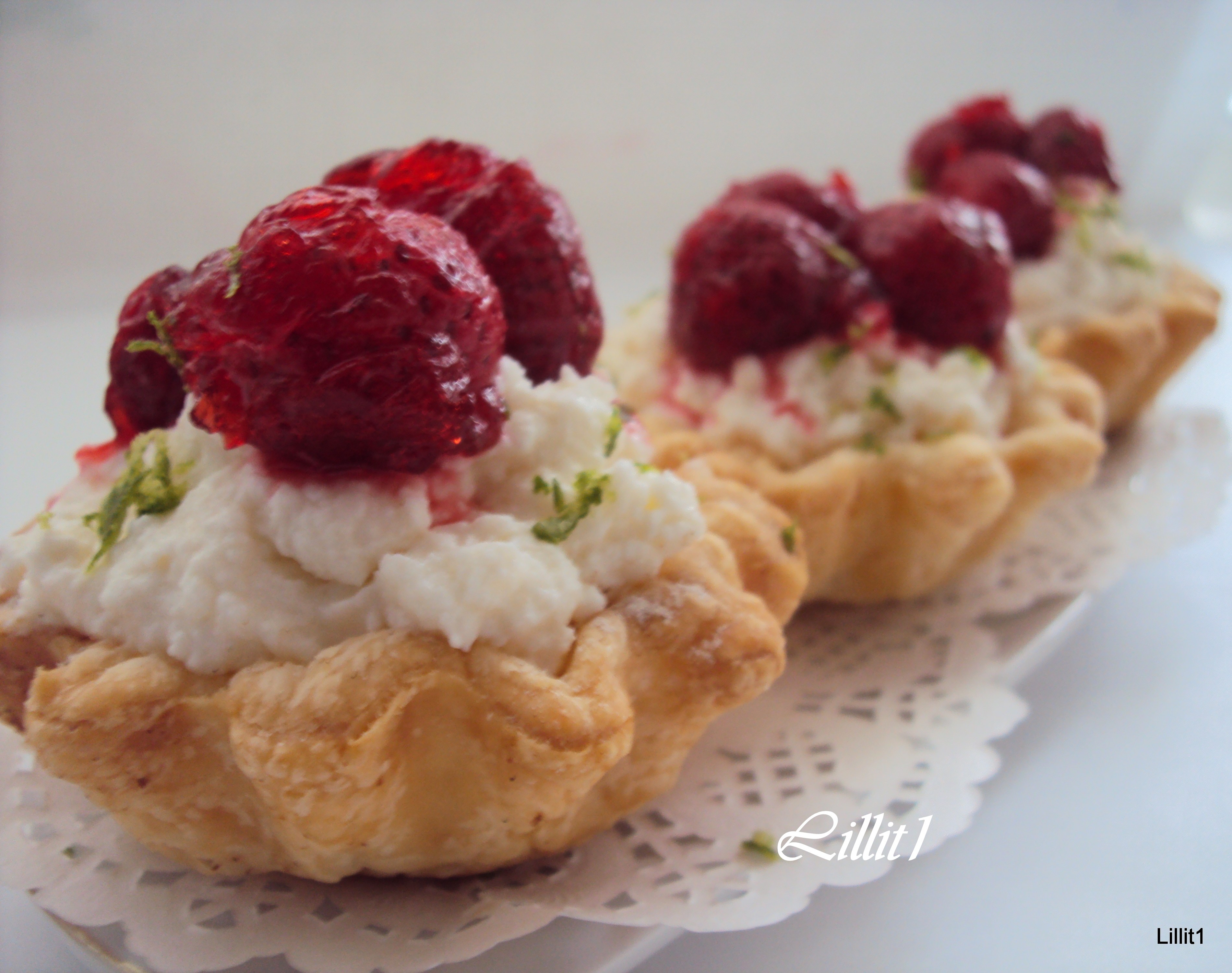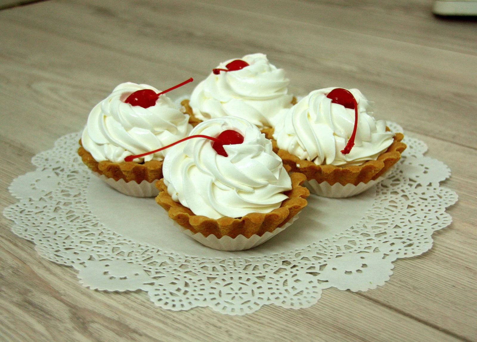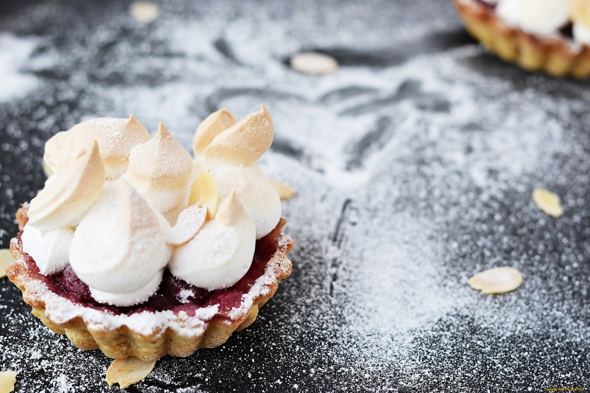 Корзиночки с белковым кремом и вишней