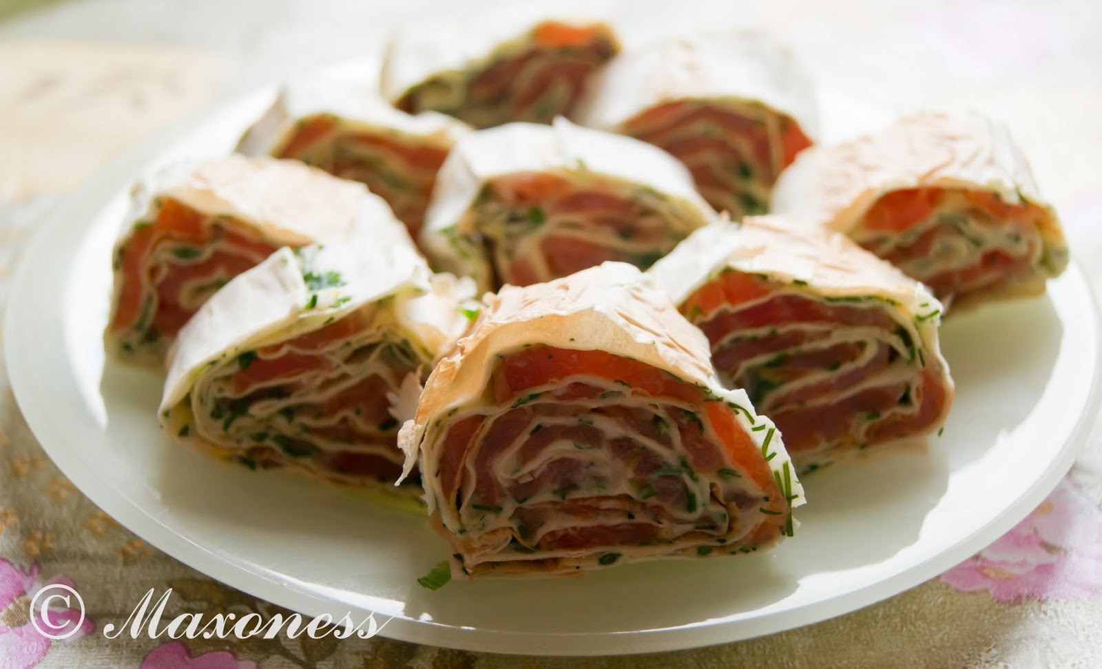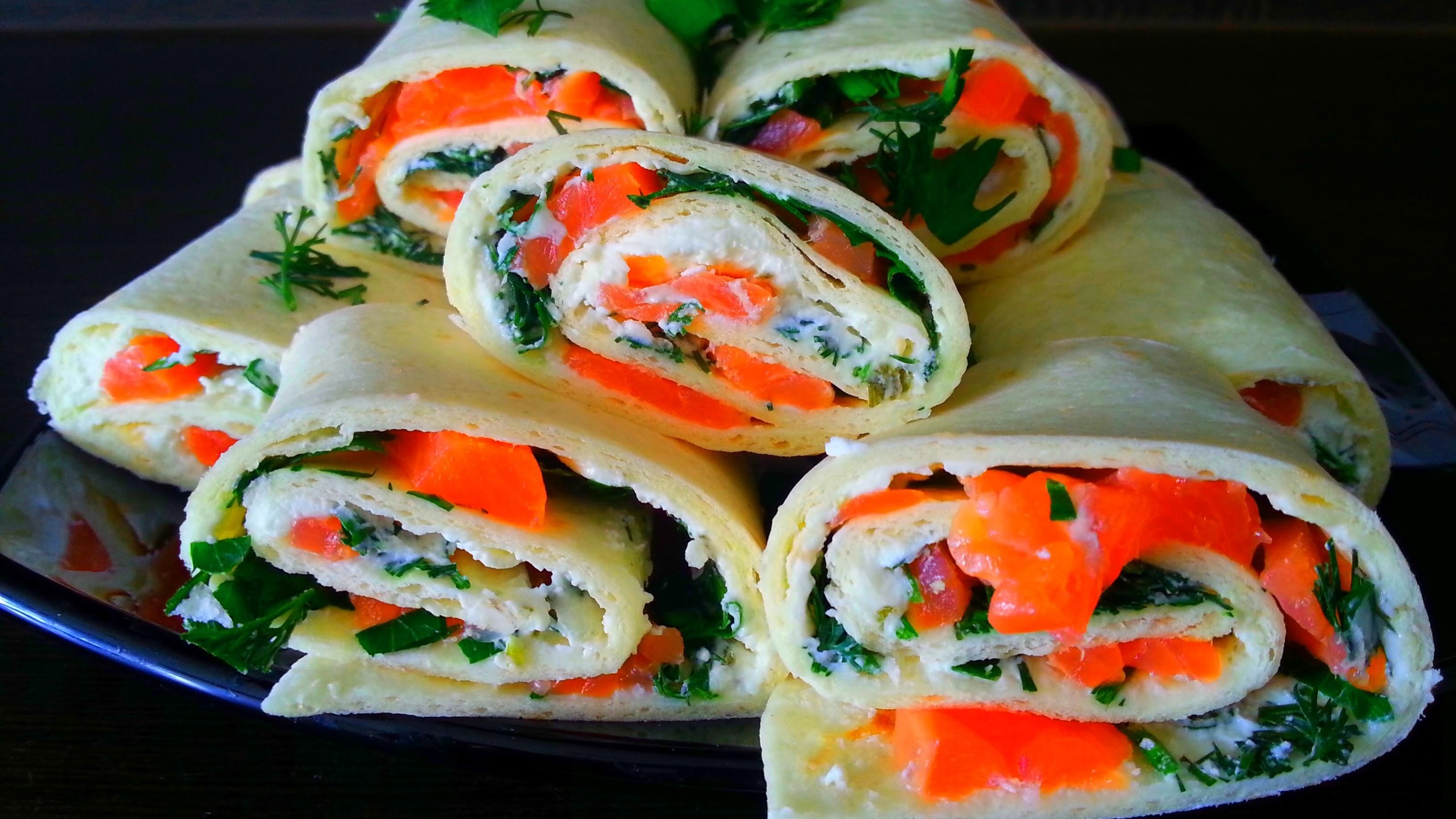 Рулет из лаваша с красной рыбой и творожным сыром