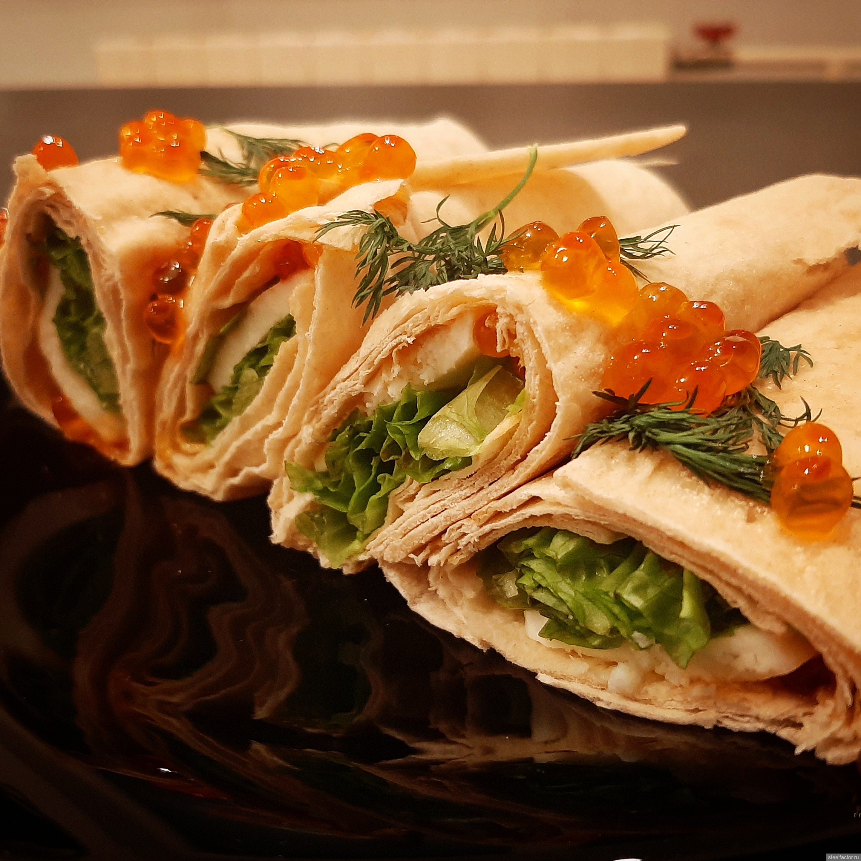 Рулетики из лаваша с икрой