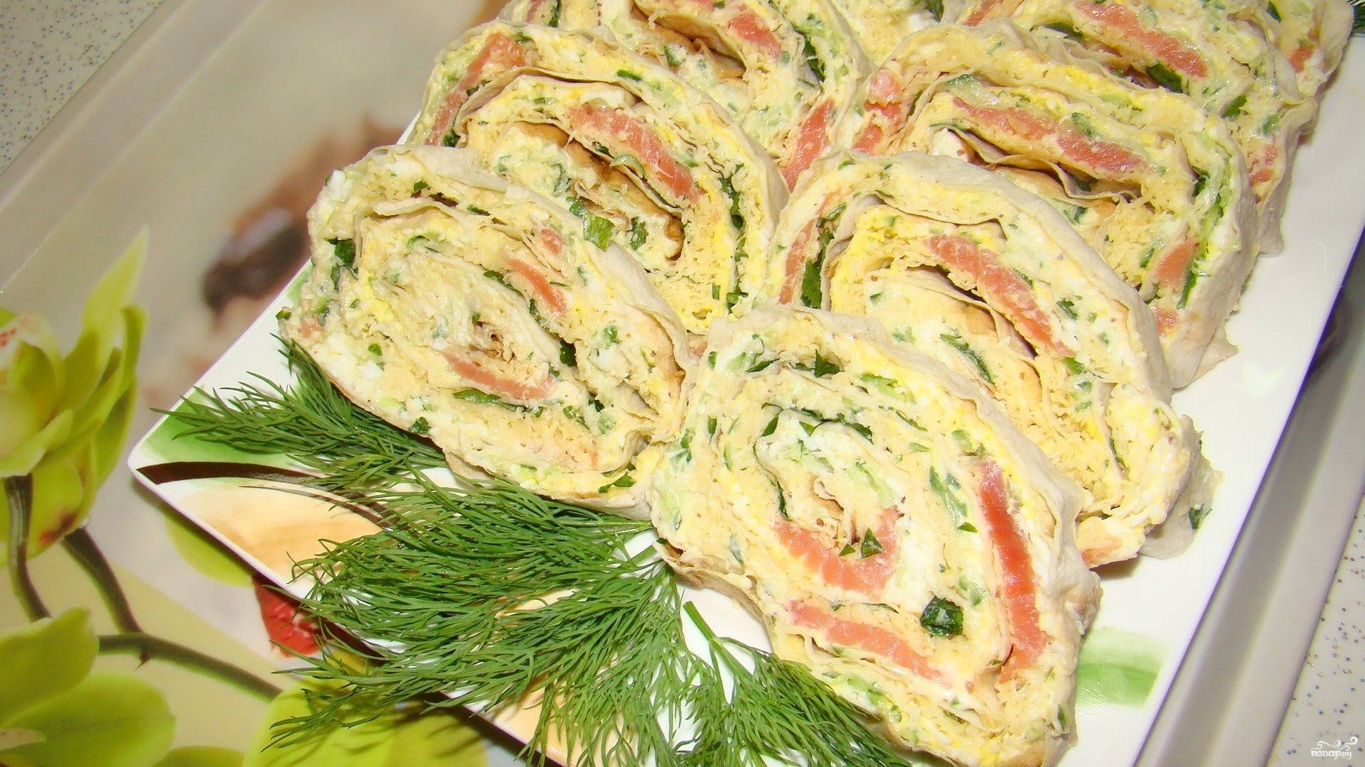 Рулет из лаваша с красной рыбой и плавленным