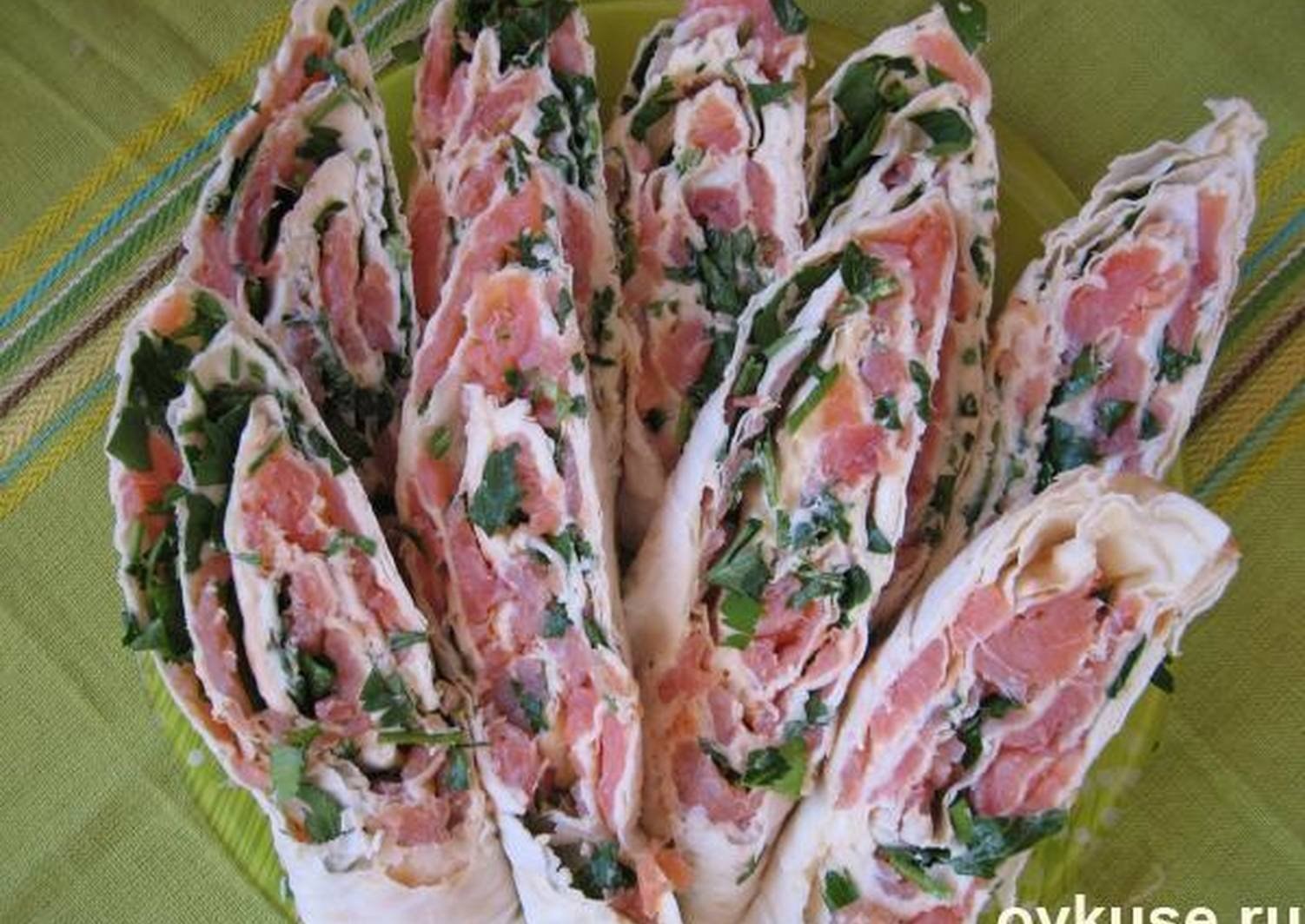 Рулетики из лаваша с рыбой