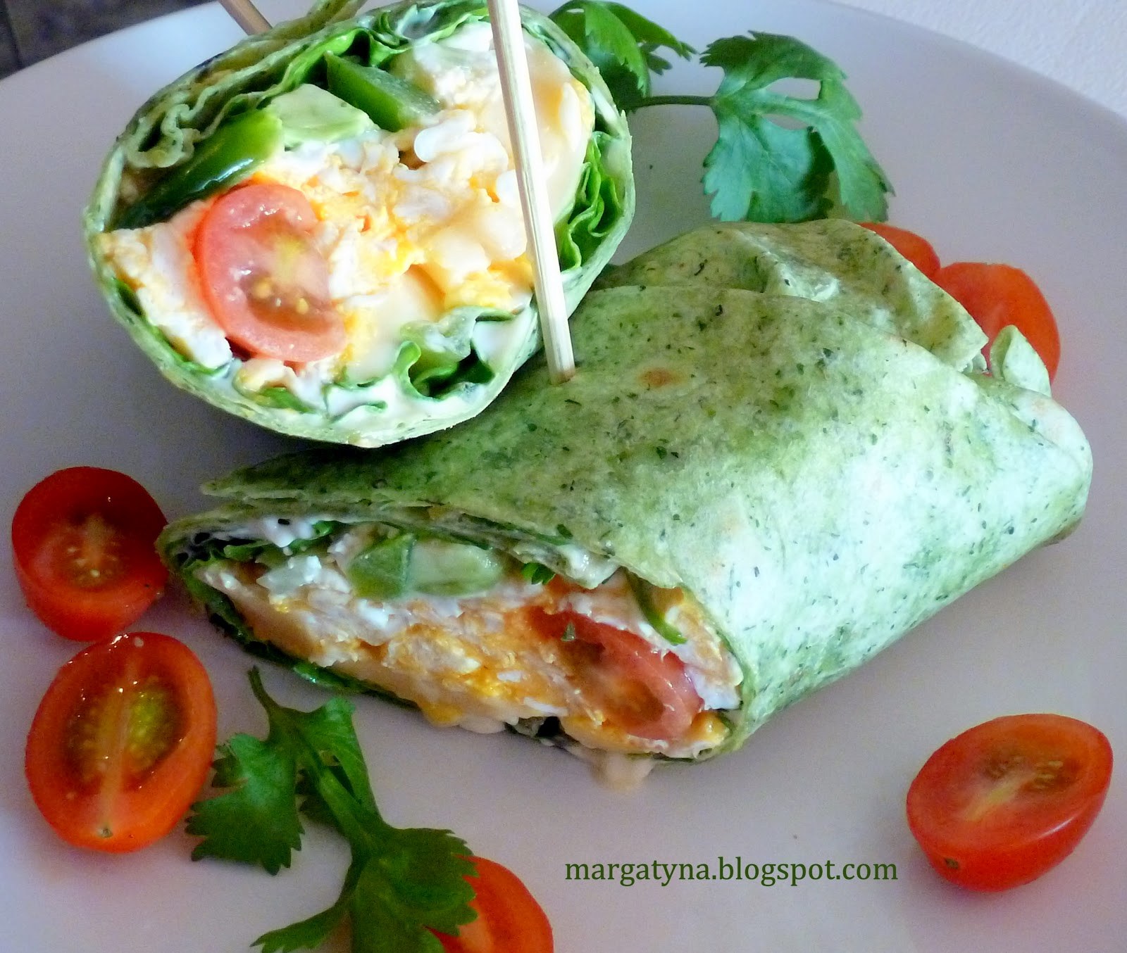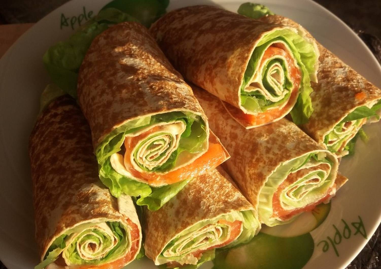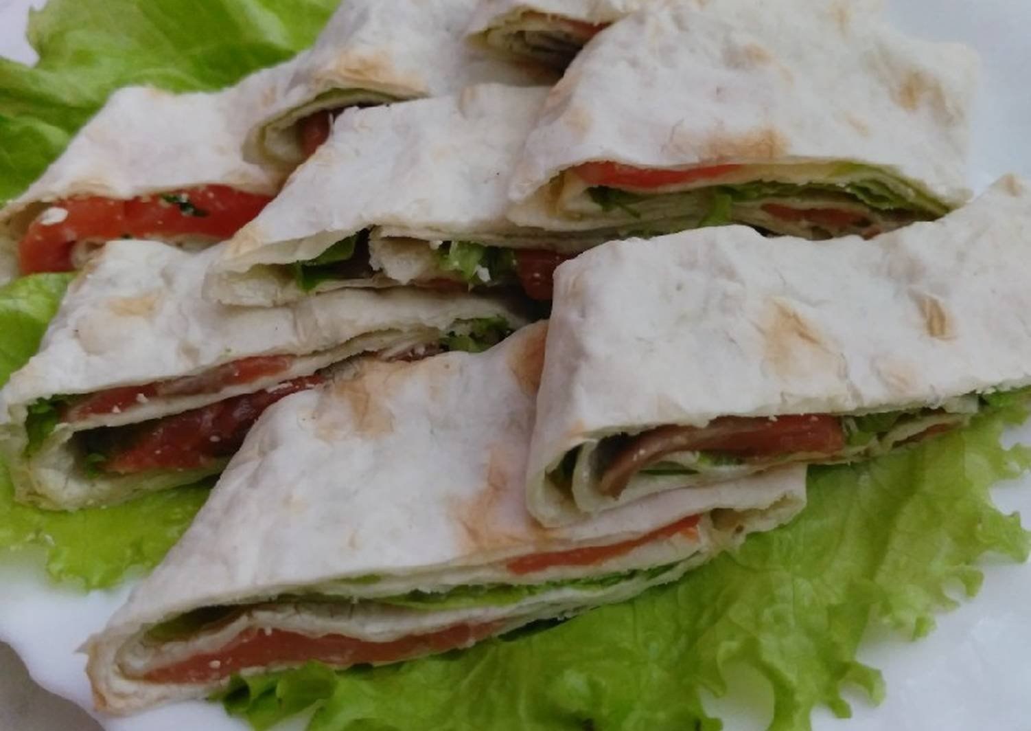 Лаваш с семгой и листьями салата