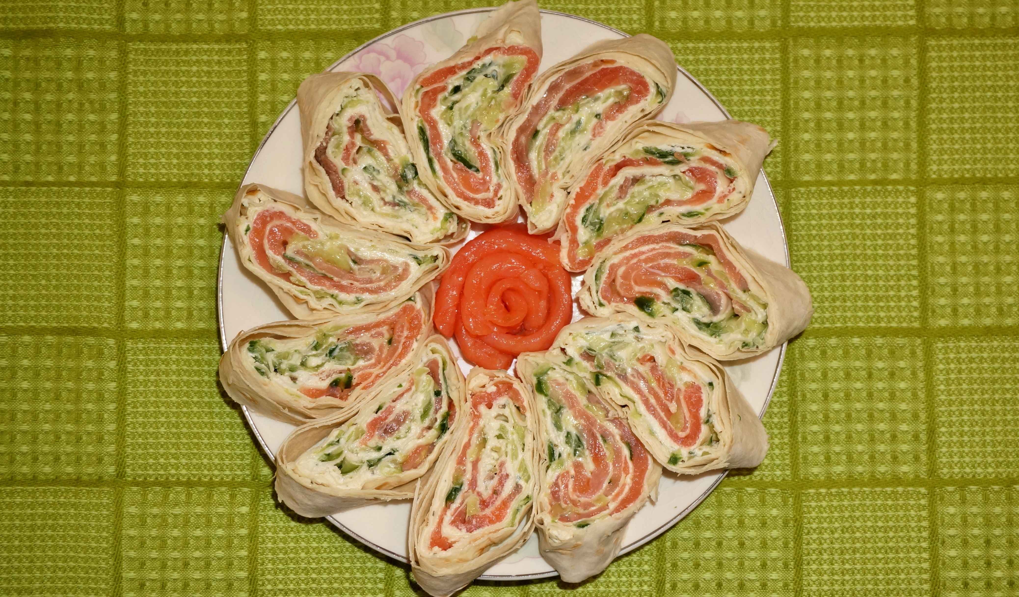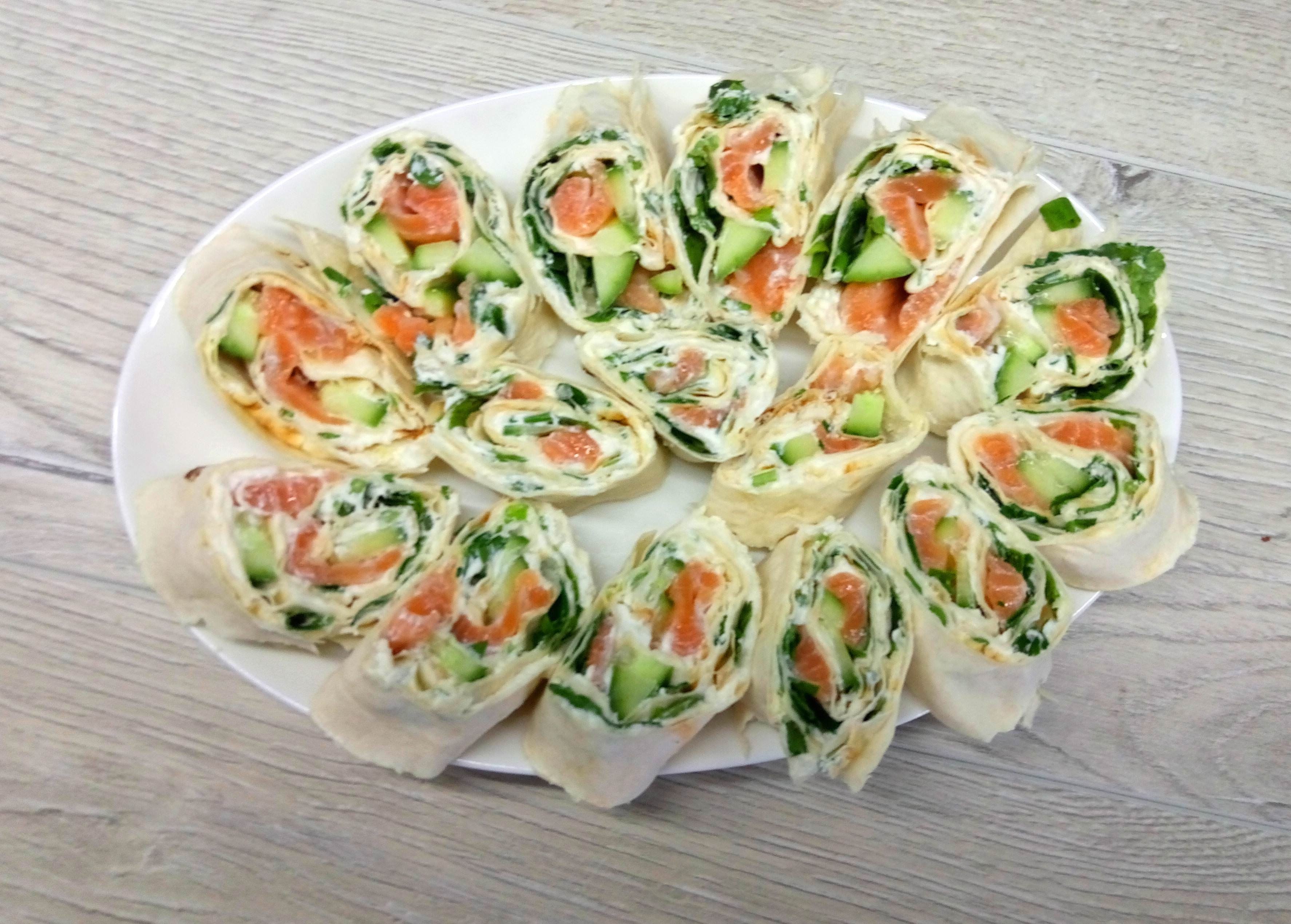 Рулет из лаваша с лососем