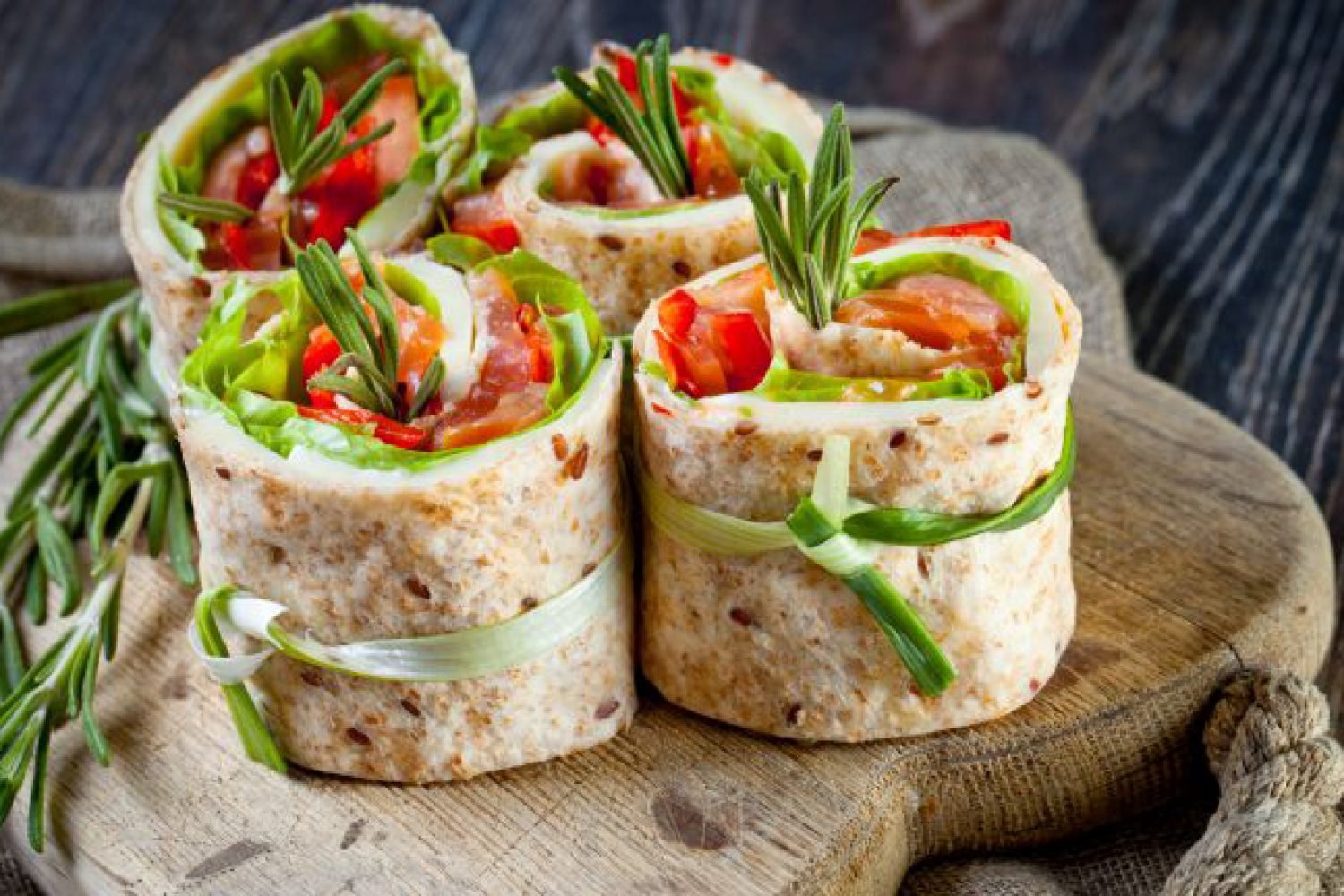 Лаваш с красной рыбой и листьями салата