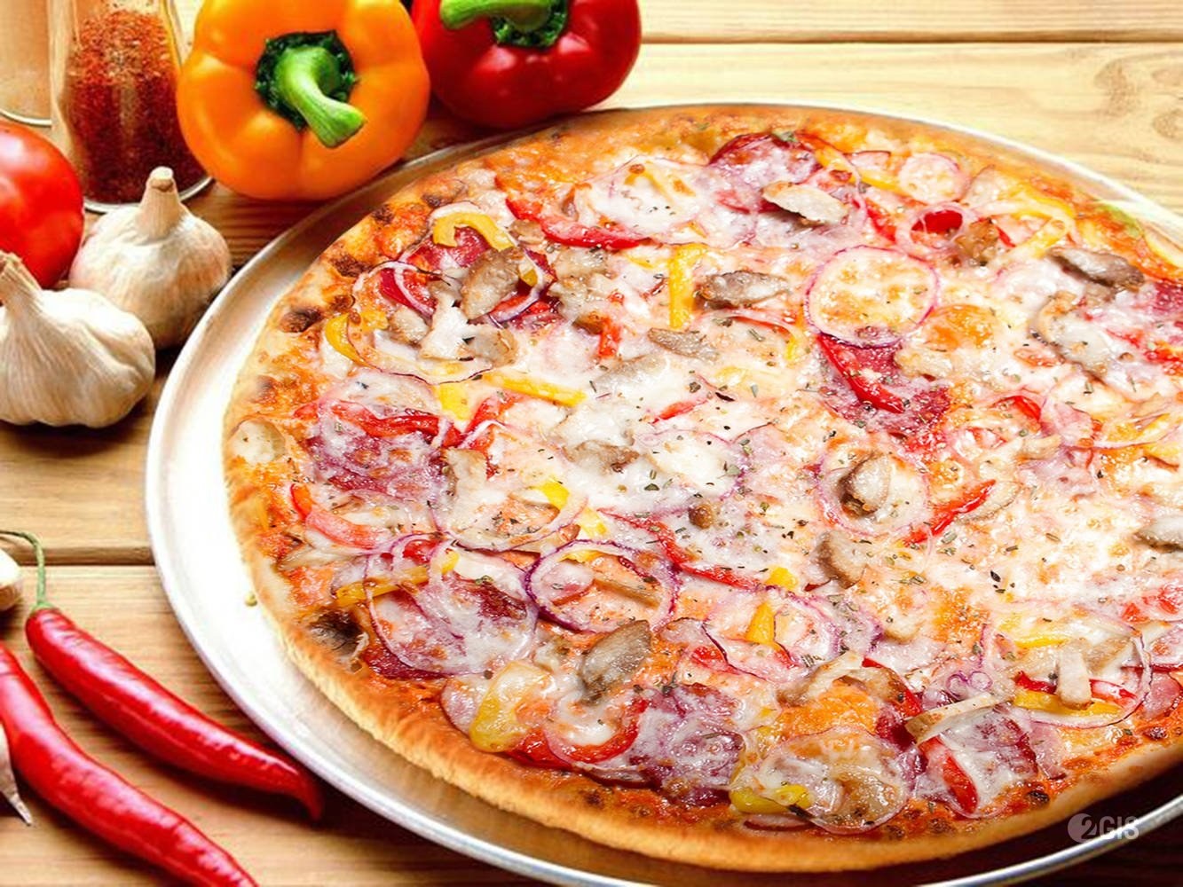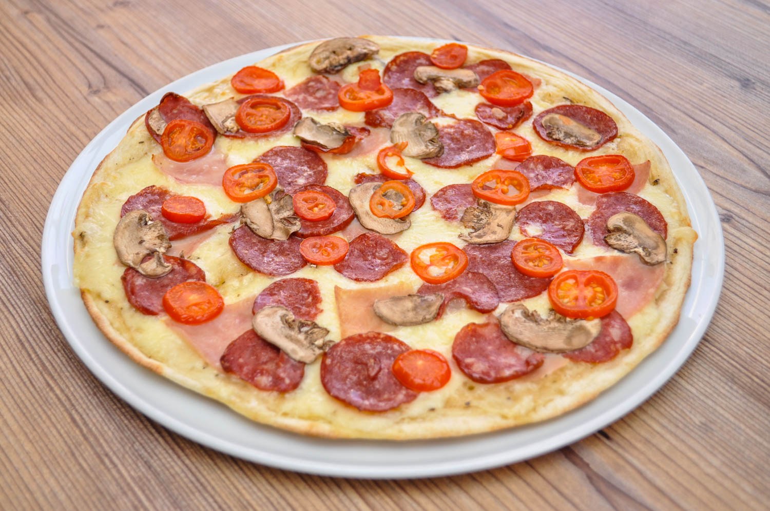 Сыр моцарелла, томатный соус, ветчина, пепперони, шампиньоны