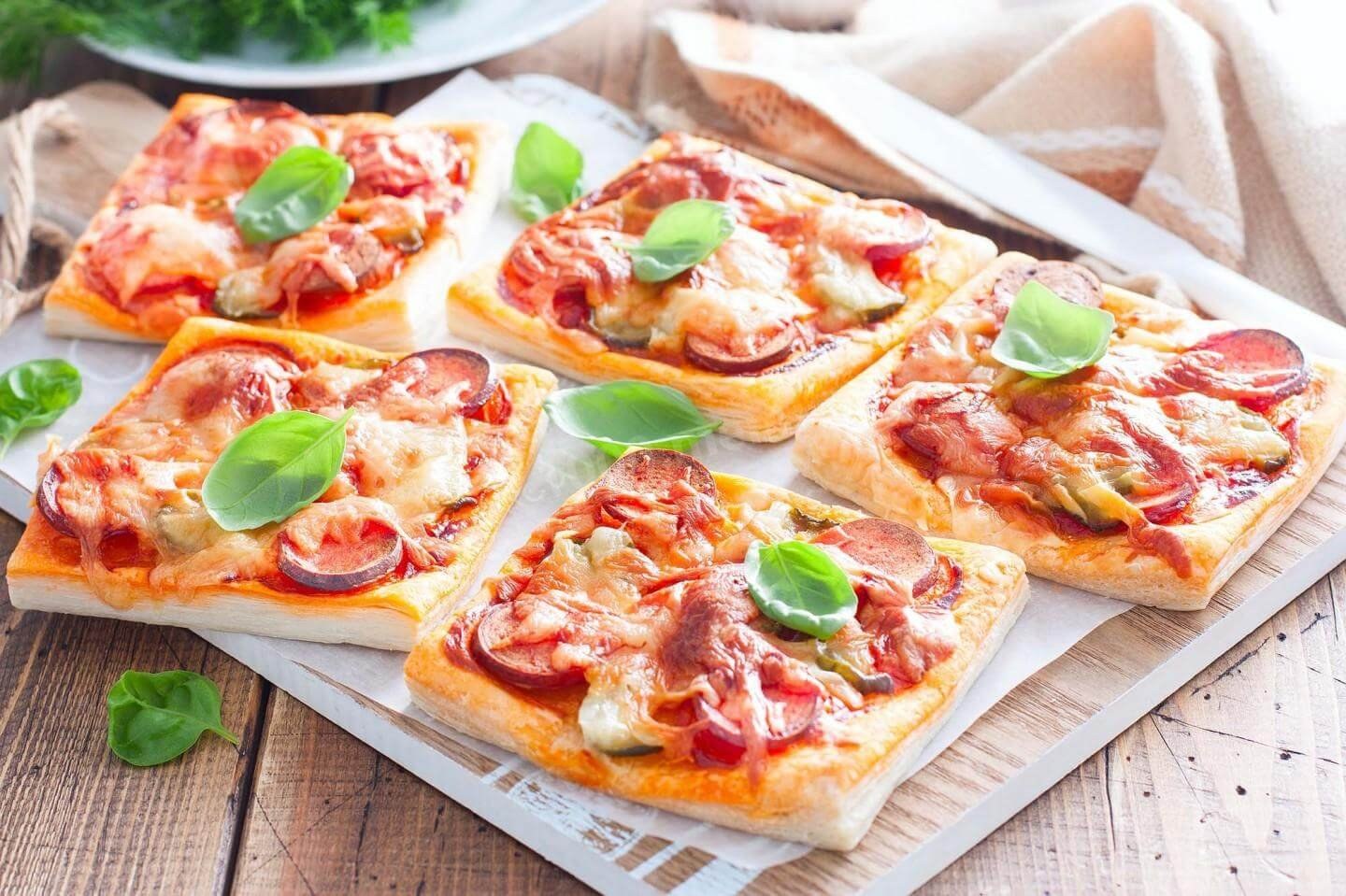 Мини пицца из слоеного теста