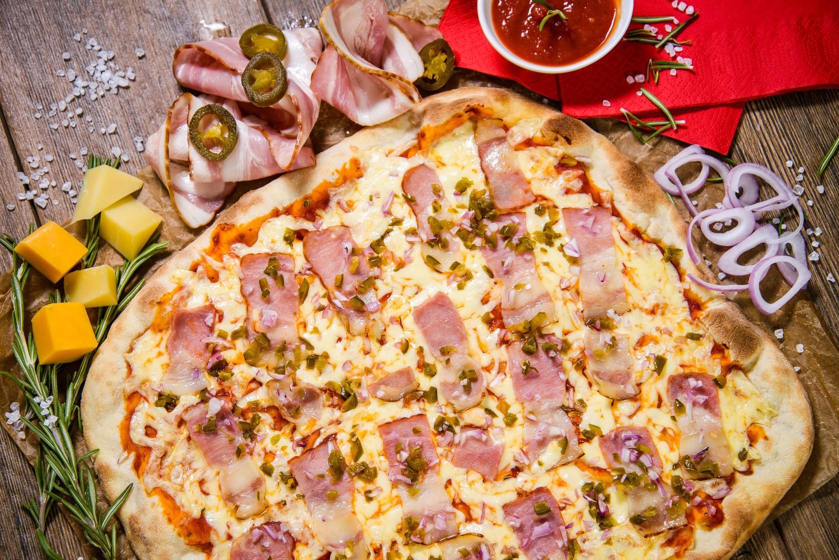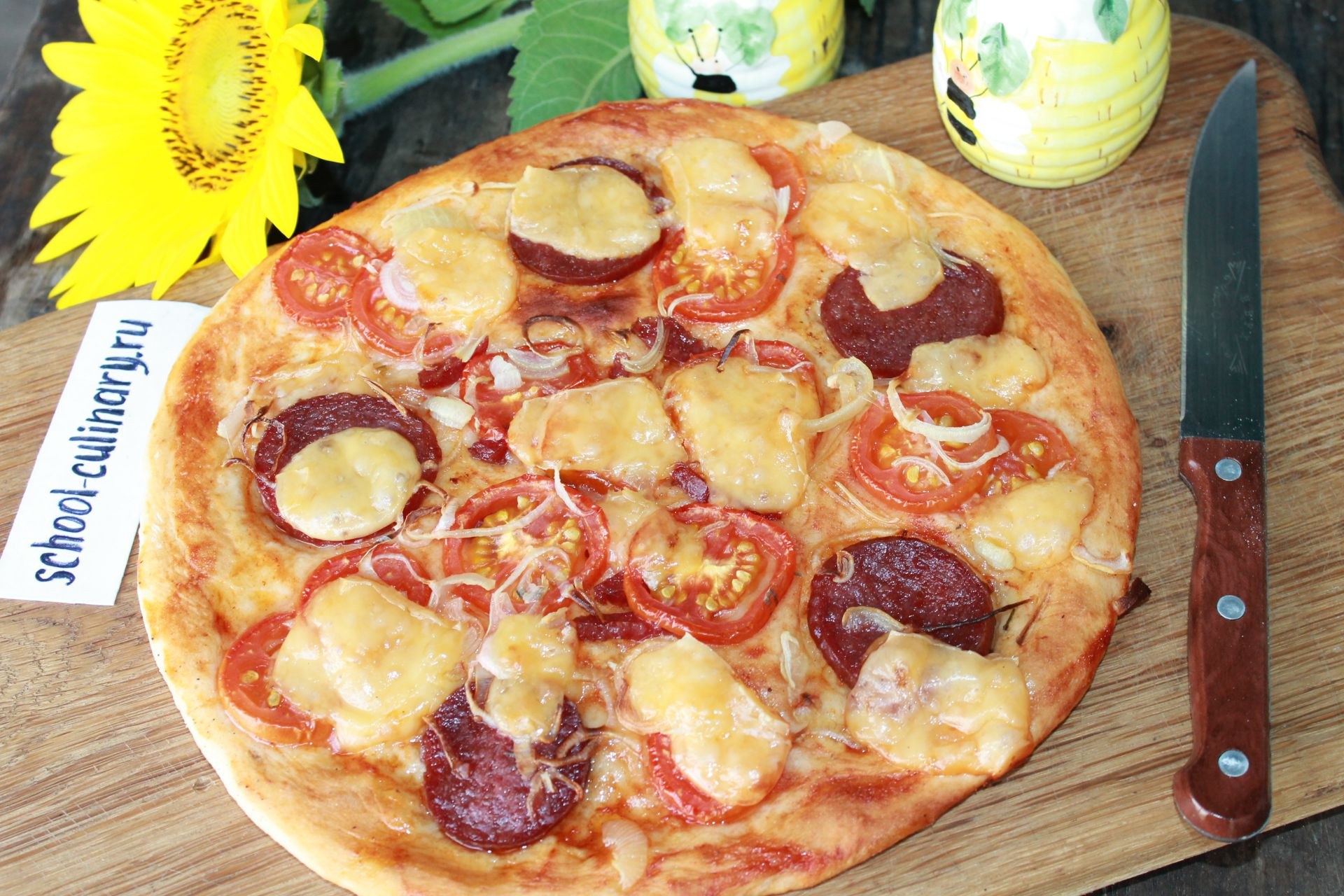 Пицца с колбасой
