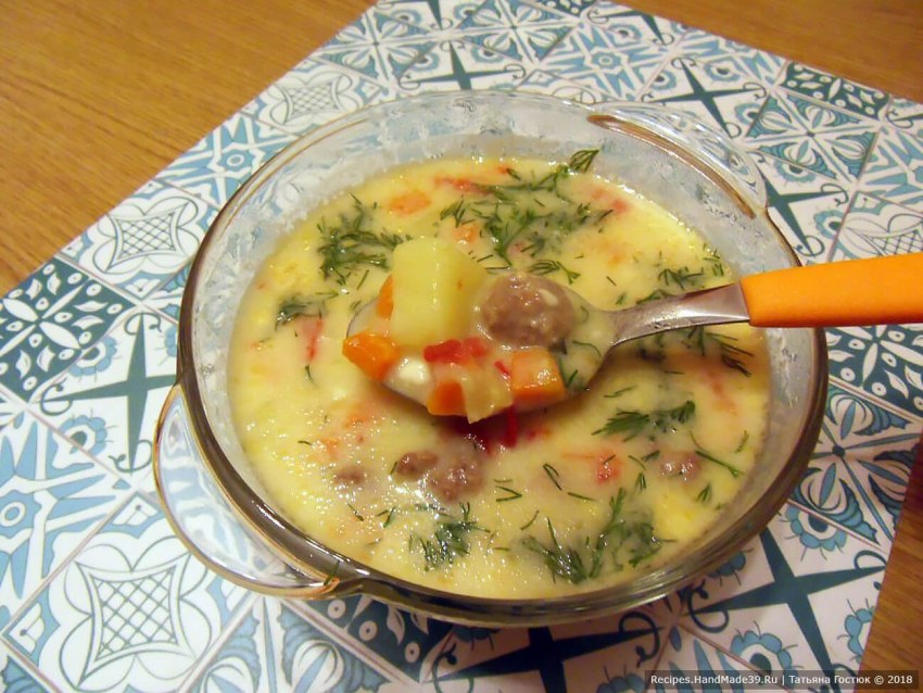 Грибной суп из шампиньонов с картофелем и плавленным сыром