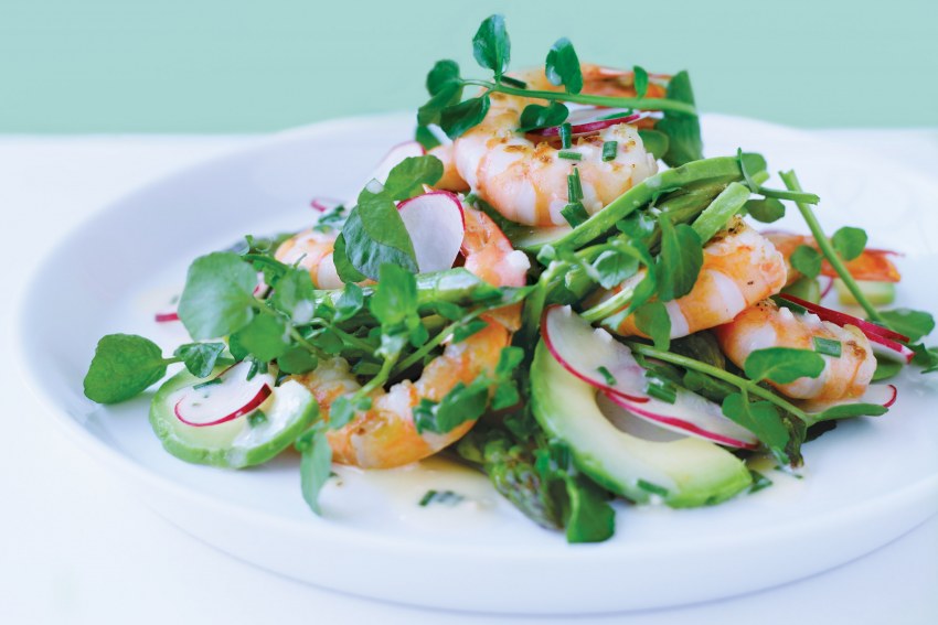 Зеленый салат с креветками и авокадо (45 фото)