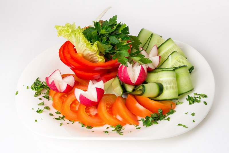 Овощное ассорти огурцы, черри, перец болгарский, редис, зелень...
