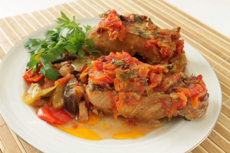 Рыба тушеная в томате с овощами