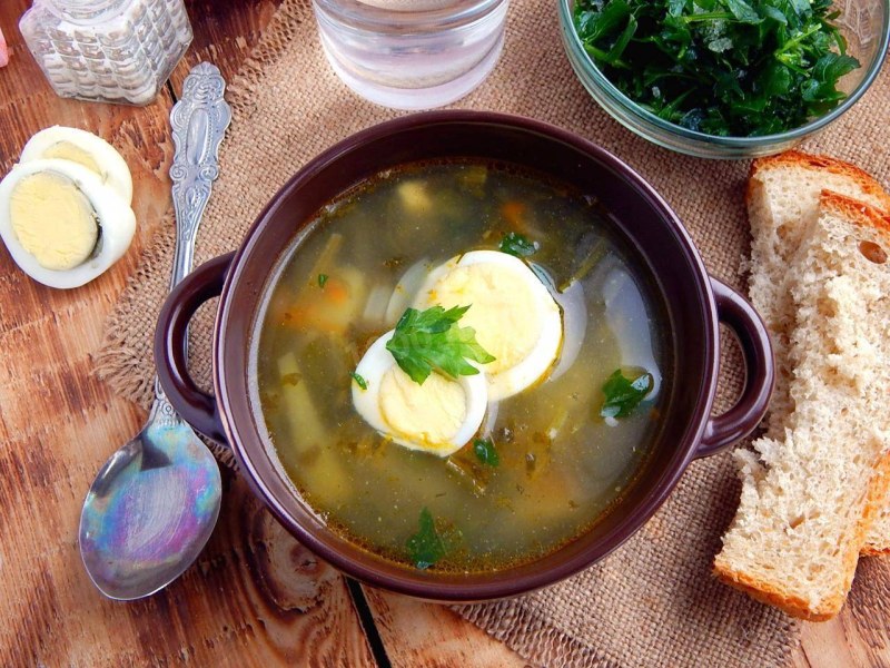 Зелёный борщ с щавелем и яйцом