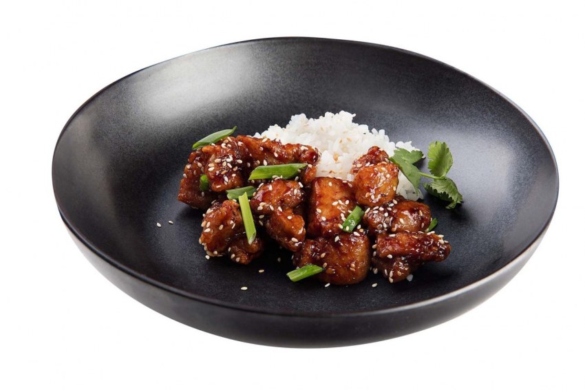 Свинина по-китайски с овощным жульеном, в керамической кокотнице