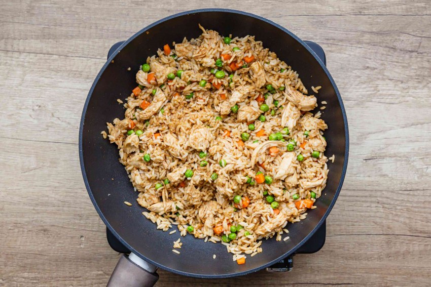 Жареный рис Жасмин с красной рыбой и бок Чой фото